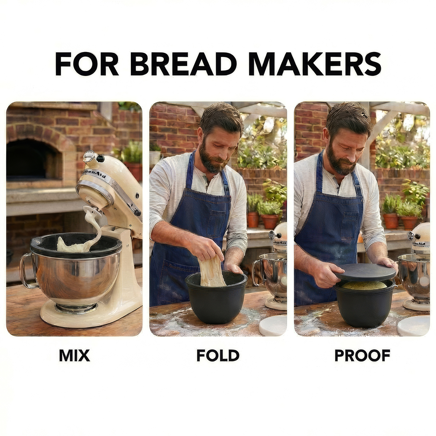 PERFECT FIT: Includes set of 2 mixing bowl liners for Kitchenaid Mixer (Bowls - 9.45in x 7in; Lids- 10.4in). Designed with heat-resistant, food-grade silicone to fit KitchenAid 4.5 & 5-quart tilt-head stand mixers. This 2 pack silicone mixing bowl liners conforms to the mixing bowl’s shape & eliminates any slipping, sliding, or moving while the mixer is on for stable performance, easy scraping, & evenly blended mixtures every time for professional baking at home. Liners slightly larger in 4.5qt.MULTI-PURPOSE KITCHEN ACCESSORIES: This pack of 2 silicone stand mixer bowl liners is the perfect accessories for Kitchen Aid stand mixer for improving baking by being versatile & flexible. Use a silicone mixer bowl insert as a prep bowl liner, baking liner, and ingredient holder all in one convenient tool. Use it to prep & mix batters, rest & portion dough, hold ingredients between steps, or line bowls to prevent sticking & mess. Reusable & space-saving, it replaces multiple baking accessories.SAVING MONEY & SPACE: Using a reusable silicone liner for kitchenaid mixer is the solution you've been looking for! Help save cabinet space & reduce clutter with these flexible & foldable silicone inserts for kitchenaid mixer, eliminating the need for disposable liners, extra prep bowls, & single-use parchment. Store them flat or inside your mixer bowl & use as a temporary storage container. Use it to hold prepped ingredients, rested dough, batters, frostings, or leftovers between baking steps.ALL AROUND KITCHEN SAFE: Made from premium BPA-free, food-grade silicone, these bakery mixer liner bowls are safe for everyday kitchen use. The silicone mixer bowl liner is suitable for the freezer, refrigerator, microwave, or dishwasher. It is designed to handle temperatures from -40°F to 460°F without cracking or warping, letting you prep, store, & reheat with confidence. These mixing bowl liners with lids create an airtight seal to help keep ingredients fresh, prevent spills, & reduce odors.PROFESSIONAL MIXING EXPERIENCE: Crafted from thick, high-quality material, these silicone liners for kitchenaid tilt-head 5 qt mixers features a substantial, hefty feel that delivers professional-grade performance. The durable construction holds its shape during mixing, resists collapsing or bunching, and provides stability. Ideal for serious home bakers, sourdough makers, and professionals, this stand mixer silicone bowl liner set makes an ideal holiday, housewarming, wedding, or birthday gift.Item# 2P-Bowl-Sili-Kit