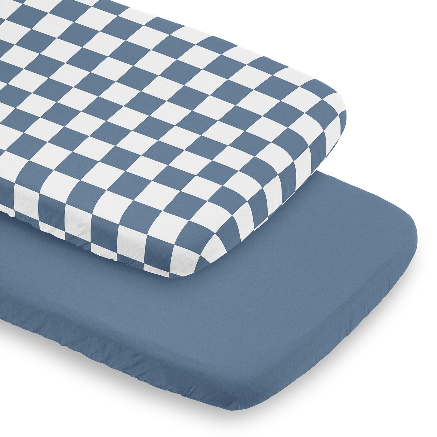 SNUG FIT: Includes: (2) Fitted Bassinet Sheets: 32in. x 19in. x 4in. each. Our sheets fit snugly, with premium elastic sewn around the bottom edge for a secure fit on most standard bassinets, pack n play bassinets, cradles, beside sleepers, & oval, hourglass & rectangular mattress shapes. These classic microfiber bassinet cover sheets feature a design of a solid slate blue paired with a white & steel blue geometric, minimalist, retro gingham plaid print. WILL NOT FIT STANDARD SIZE OR MINI CRIBS.DESIGNED IN THE USA: By real parents who understand the need for comfort, practicality, and style. Sweet Jojo Designs is a small, women owned business. The mom's on our team know a fitted bassinet sheet is first priority for your baby essentials to ensure a restful night of sleep. We use top fabrics & designs to create soft bassinet sheets that are stretchy & comfortable for your infant. We've studied the latest trends in gingham bassinet sheets for baby boy to bring you the finest product.SAFE & DURABLE: Sweet Jojo Designs is a proud Baby Safety Alliance member & rigorously tests products to meet or exceed CPSC safety standards. Our breathable bassinet sheets are designed with busy parents in mind. Quick to change, easy machine washable & tumble dry low. The high quality stitching & fabric ensure long-lasting use & will hold up wash after wash. Use one bassinet sheet in your newborns bed & have spares to swap in between washes & be prepared if an accident happens in the bassinet.PERFECT GIFT: Add baby boy bassinet sheets to your list of newborn essentials must haves! Including rectangle bassinet sheets on your gift registry, in a baby shower gift basket or as a gender reveal present is an easy way to prepare for a baby's arrival. Whether it's nap time, bedtime, or an unexpected mess, having extras of these bassinet mattress sheets make changes effortless so you can focus on what matters most to you & your family. You can never have too many oval bassinet sheets!NURSERY DESIGN MADE EASY: If you have a nursery to decorate, we have endless coordinating options to help. A nursery theme can be planned entirely around bedside sleeper sheets. Sweet Jojo Designs makes decorating simple with matching crib bedding sets, toddler bedding sets, crib sheet set, crib bed sheets, changing pad covers, milestone blankets, wall decor, decorative accessories, swaddles, and window treatments to make sure you have all you need to complete the look of your baby room. Item# 2P-BS-Check-BU-WH