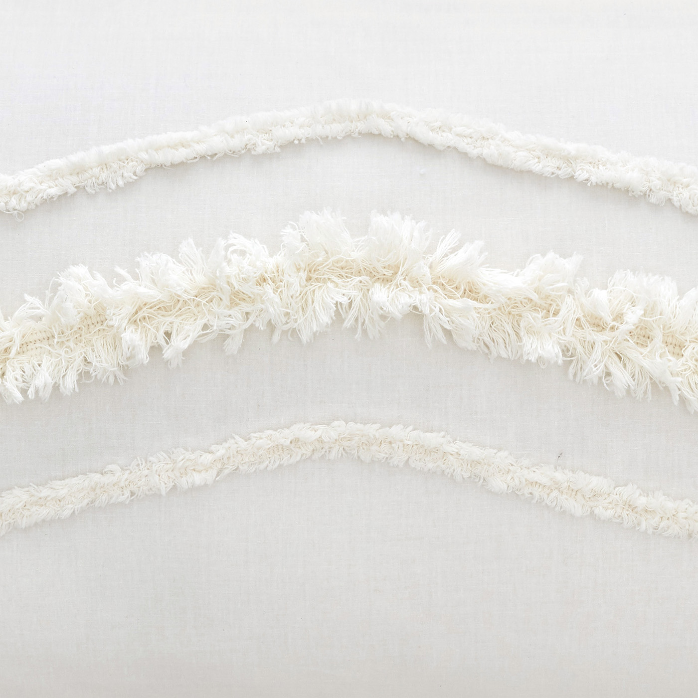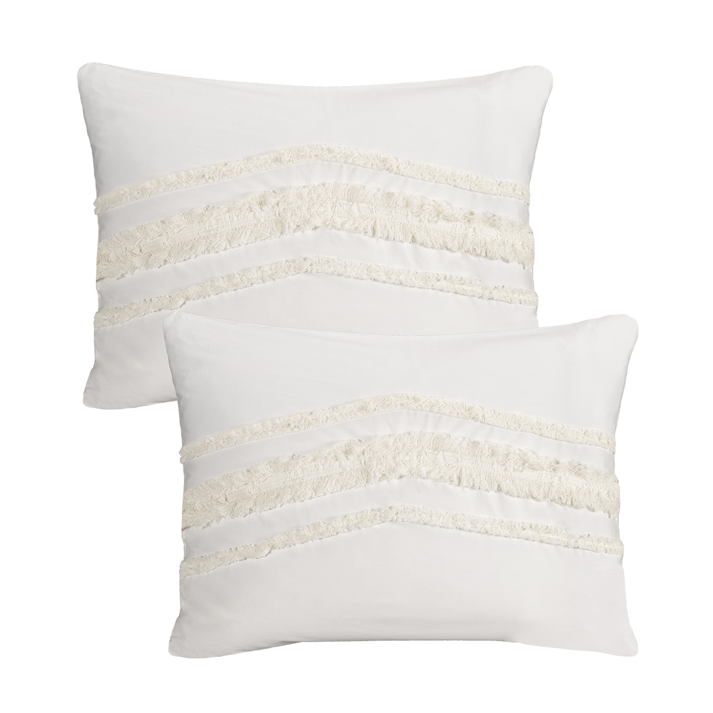 Exclusive Design: Minimalist luxury ivory cotton with textured hand tufted fringe trims in an oversized chevron pattern.Set and Dimensions: Set of 2 – Standard Size Pillow Sham 20 in. x 26 in. each. Features: Back flap opening on pillow cases make inserting and removing your pillow quick and easy. Materials and Care: 100% Cotton - extremely soft and breathable. Machine washable. Tumble dry low.Matching Accessories: We offer coordinating bedding sets, decorative throw pillows, shower curtains, window panels, pouf covers, bed skirts, body pillows and more. Please check our store for these accessories.Item# 2P-Case-Tuft-IV