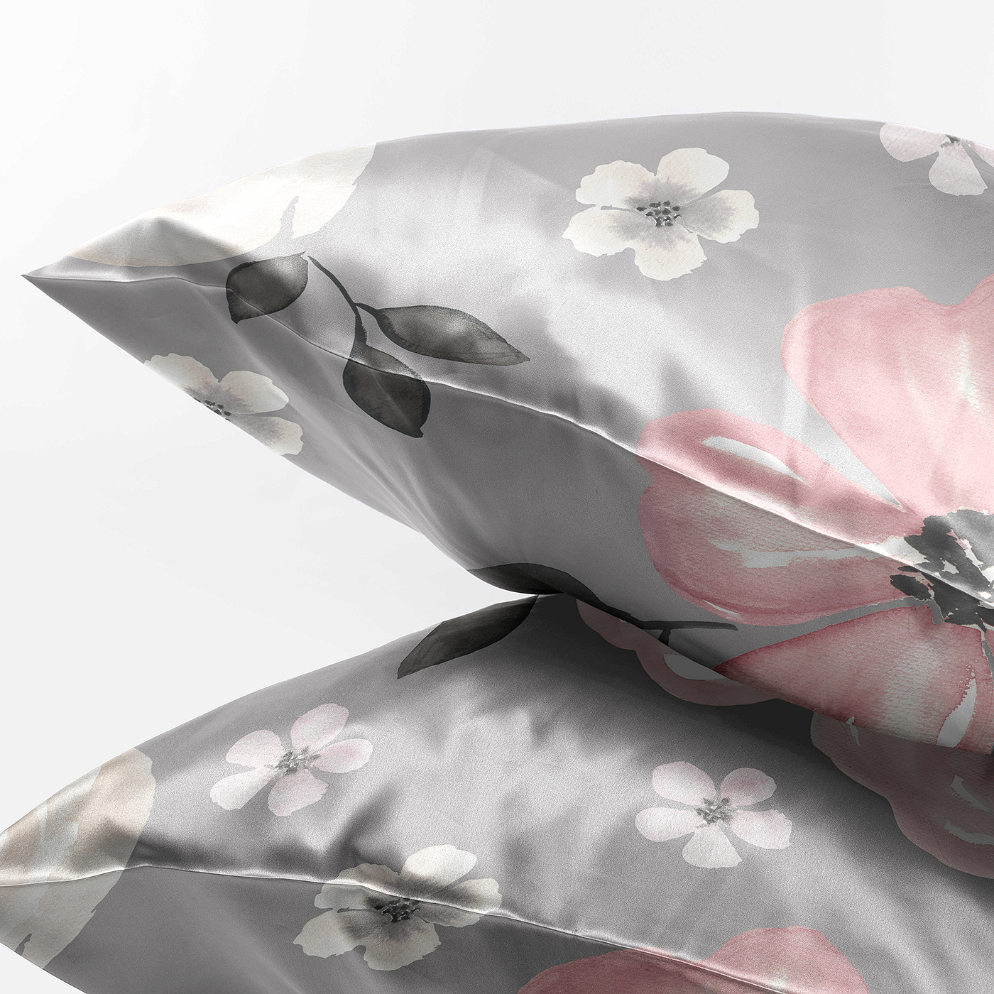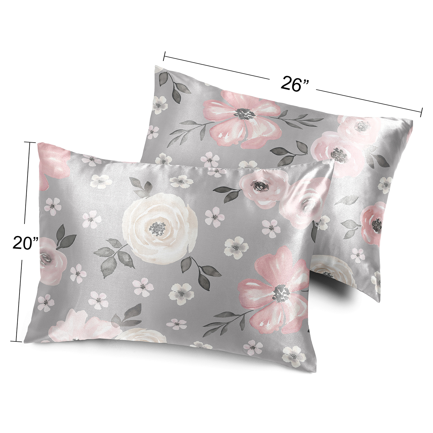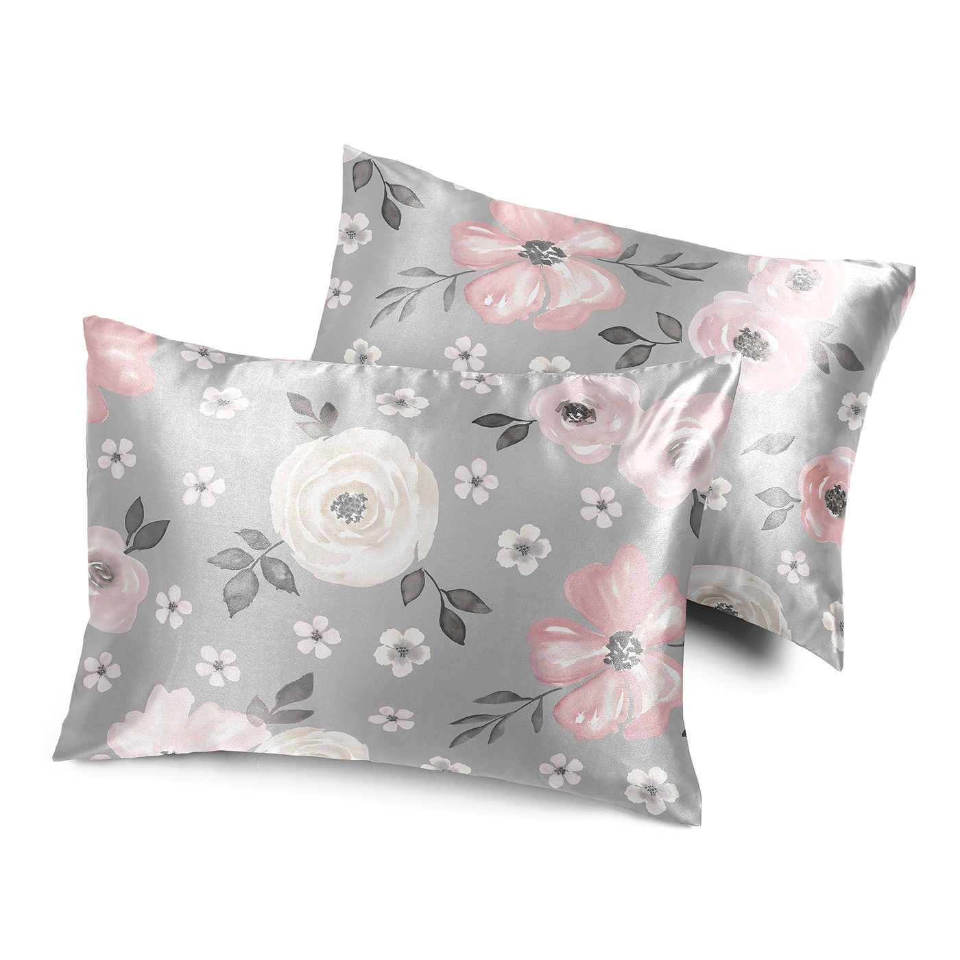 SOFT & COZY: This standard size satin pillow cases 2 pack zipper measures 20 in. x 26 in. each. Designed with moisture wicking, silky soft satin fabric. Machine washable, tumble dry low. Do not iron, bleach, or dry-clean. These elegant farmhouse satin pillow cases standard size for girls features an exclusive design of a blush pink, ivory and gray bohemian chic, botanical, rose, flower, watercolor floral print to complete your shabby chic bedroom or guest room themed look. PILLOWS NOT INCLUDED.DESIGNED IN THE USA: As a small, women-owned business, Sweet Jojo Designs is dedicated to creating high-quality products that blend style and functionality. Our products are crafted with premium materials and details to have your bed room decor come alive and help you design the perfect space for your home. We've studied the latest trends in boho floral satin pillowcase for girls to bring you the finest product. Trusted by families worldwide, Sweet Jojo Designs brings your vision to life.CONVEIENT & HYGENIC: These standard pillow case covers include hidden zipper closures that make inserting and removing your pillow quick and easy. Having two satin pillowcases with zipper instead of one allows for easy swapping between washes, and can provide an upgrade to any room in your house for the ultimate luxurious transformation! Display pillow covers standard size on kids beds, in children’s bedrooms, teenager college dorms, adult bed rooms & guest rooms when you’re ready for a change! SATIN FABRIC BENEFITS: Wake up without hair frizz and be ready for the day with our satin pillowcases that are even softer than silk. Its smooth surface reduces hair friction and ensures your hair remains undisturbed while you sleep. The smooth satin fabric glides effortlessly against your skin, reducing fine lines, wrinkles, and creases giving you a transformation once you wake up. Start your day feeling good with glowing glass skin, non-frizzy hair, refreshed and ready for the day!MATCHING DECOR & ACCESORIES: Purchasing a satin pillowcase set from Sweet Jojo Designs offers a variety of benefits, ensuring both comfort & style for any bedroom. Each set is crafted from high-quality fabrics, providing soft bedding that promotes restful sleep. We offer a wide variety of coordinating room decor such as hampers, window treatments, wall decor, bedding sets, shower curtains, memos, decorative pillows and more. Include It in your baby shower gift basket or gender reveal presents.Item# 2P-Case-WatercolorFloral-GREY-SAT