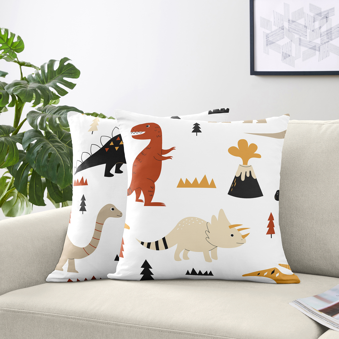 Bring style and fashion into your home with these beautiful and unique decorative accent throw pillows. These rust orange, taupe, beige and black modern dinosaur print brushed microfiber pillows are both stylish and practical. No need to buy a new sofa or bedroom suite just because you’re craving a change. Whether on a bed, chair, or sofa, these large throw pillows are a great and inexpensive way to get that instant makeover. Coordinates with matching bedding sets by Sweet Jojo Designs.