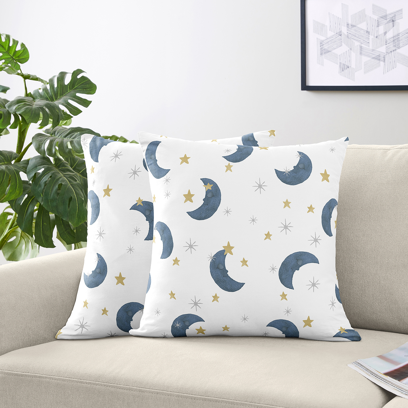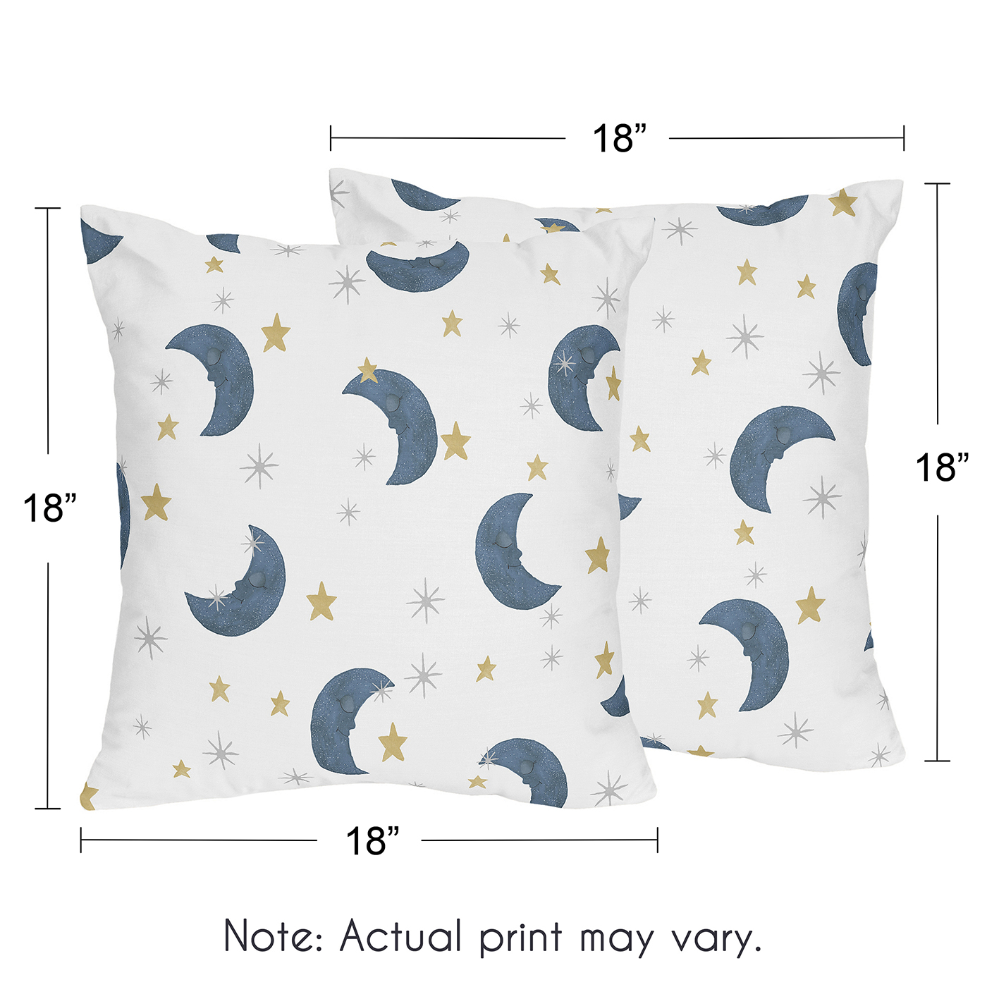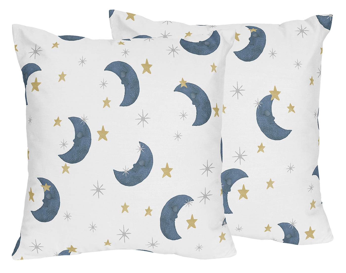 Bring style and fashion into your home with these beautiful and unique decorative accent throw pillows. These navy and gold moon and stars celestial print brushed microfiber fabric pillows are both stylish and practical. No need to buy a new sofa or bedroom suite just because you’re craving a change. Whether on a bed, chair, or sofa, these large throw pillows are a great and inexpensive way to get that instant makeover. Coordinates with matching bedding sets by Sweet Jojo Designs.