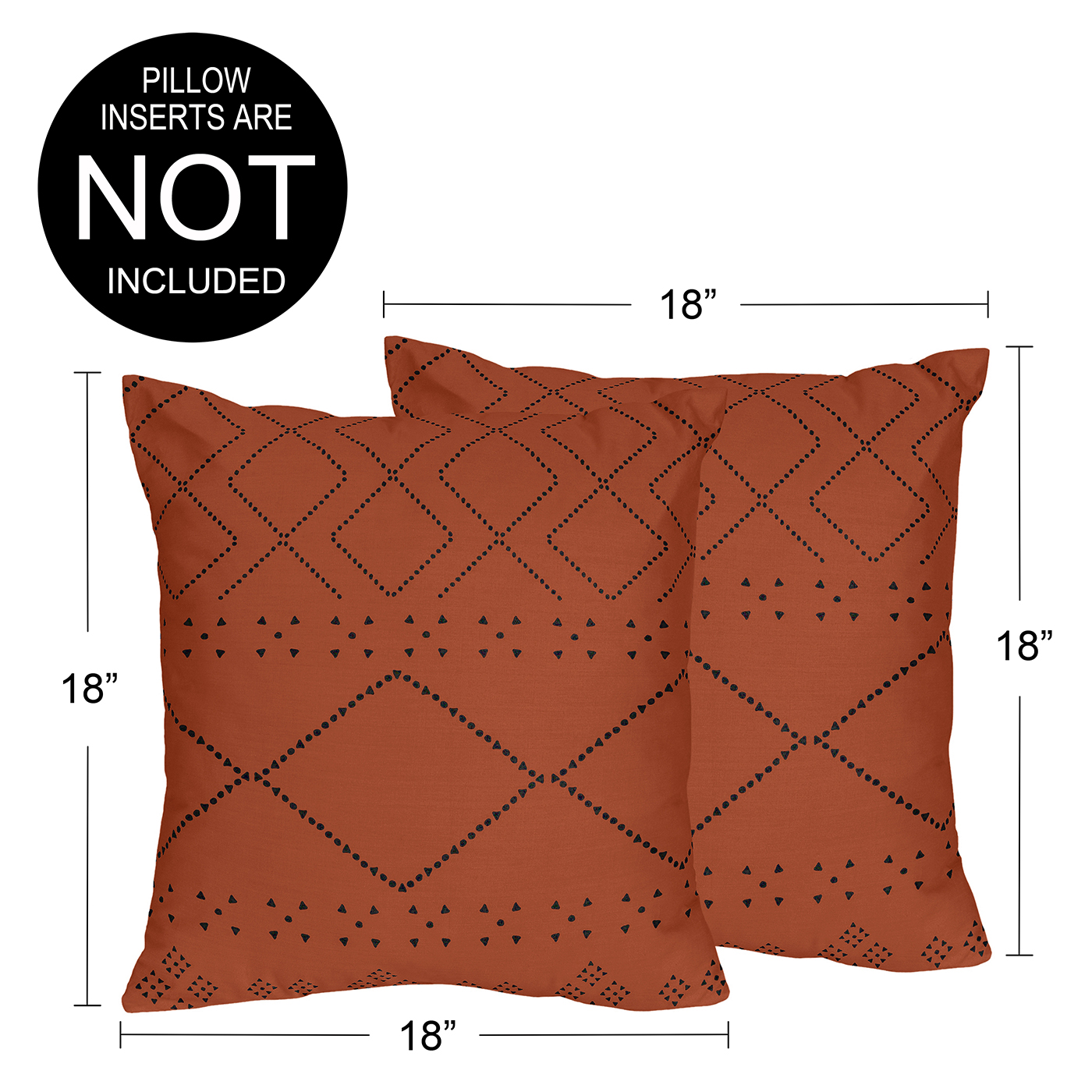 This Sweet Jojo Designs 2-piece Black and Orange bohemian geometric tribal aztec decorative pillow cover set will create a southwestern rustic look that will complement any room. This 2-Piece set combines an exclusive mix of dotted diamond patterns and boho design, featuring an detailed tribal pattern. It uses the gorgeous color palette of burnt orange rust and black. This unique decorative pillow set will add an urban feel to any room. This trendy pillow cover set uses soft and wrinkle resistant brushed microfiber fabrics for long lasting wear and luxurious feel. The hidden zipper closure makes for easy care and convenient use. This Sweet Jojo Designs luxury decorative pillow cover set is machine washable for simple care. Whether on a bed, chair, or sofa, these throw pillow covers are a great and inexpensive way to get that instant makeover.