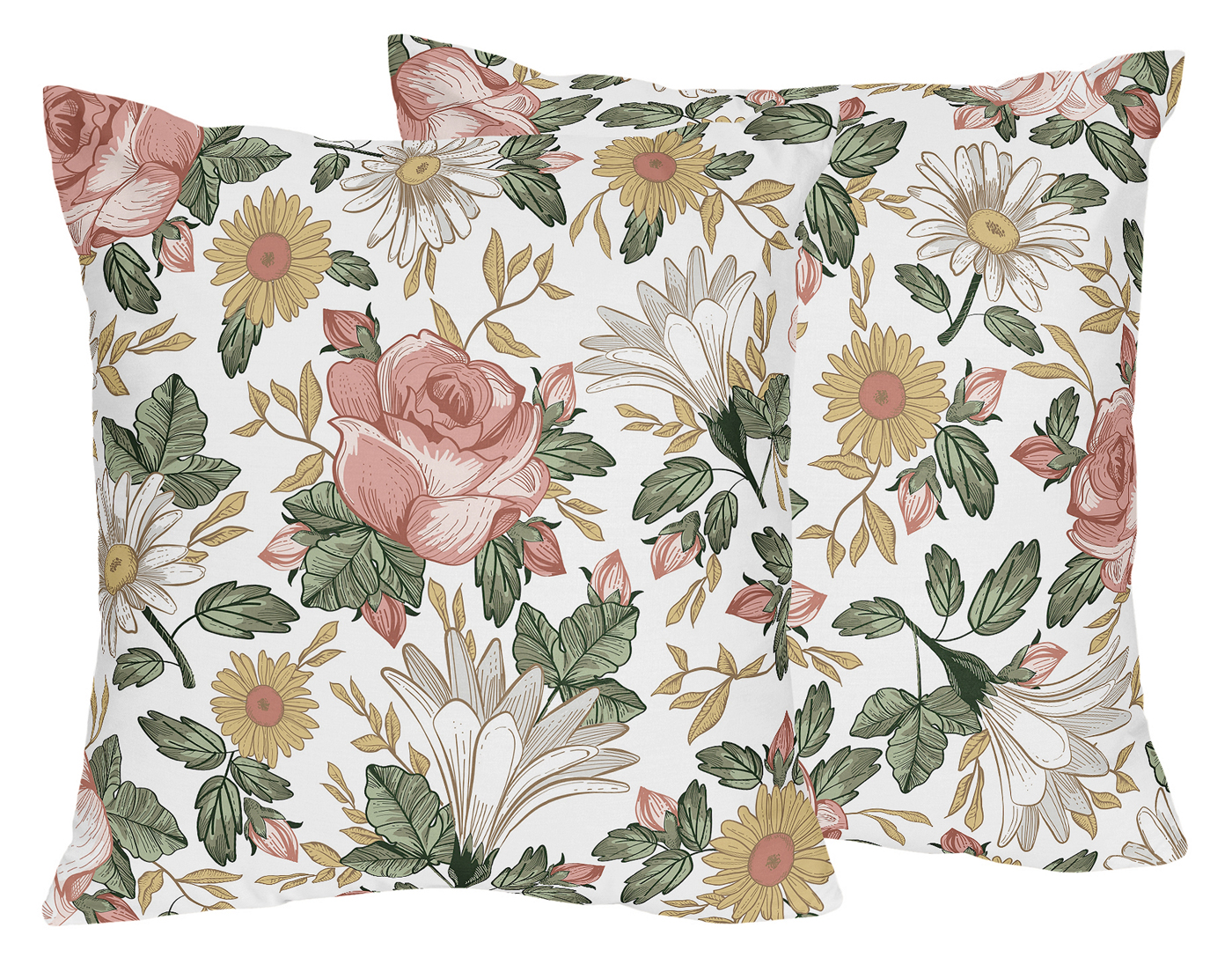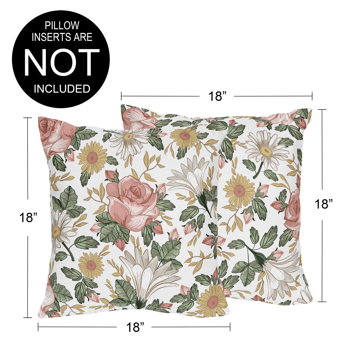 Includes: (2) Throw Pillow Covers, 18 in. x 18 in. each. PILLOWS NOT INCLUDED. Easy machine washable and tumble dry low.These brushed microfiber decor pillow covers feature a blush pink, yellow, sage green and white vintage boho shabby chic bohemian floral rose daisy flower farmhouse wildflower leaf print designed to match the Pink and Green Vintage Floral Collection.Add a small couch pillow case set to any room in your house and watch it transform! Buy extra throw accent pillows for couches, recliner, sofas, window seats, desk chairs in your livingroom, familyroom, work office, bed, teenager college dorm, class room, apartment or townhouse when you’re ready for a new look! No need to buy a new sofa or bedroom suite just because you’re craving a change. Throw pillow covers are a budget friendly way to makeover any room. These throw accent decorative pillow covers come in a convenient pack of 2. Order as many as you need for your favorite spaces to complete your dream decorative theme. Or buy a variety of patterns and switch out as needed. Mix and match solids with patterns for a layered aesthetic. A versatile stash of pillowcases allow you to adapt your space for special events, occasions, holidays or seasons without needing to store bulky pillows for every look.Makes the perfect gift to coordinate with Sweet Jojo Designs curtains, blankets, storage bins, dog crate covers and wall art. Include it in your house warming gift basket or welcome presents or even add to your wedding registry to ensure you have all you need to showcase your personality and creativity in your Sweet Jojo Designs styled room.Item# 2P-Dec18-VintageFloral-PK-GR