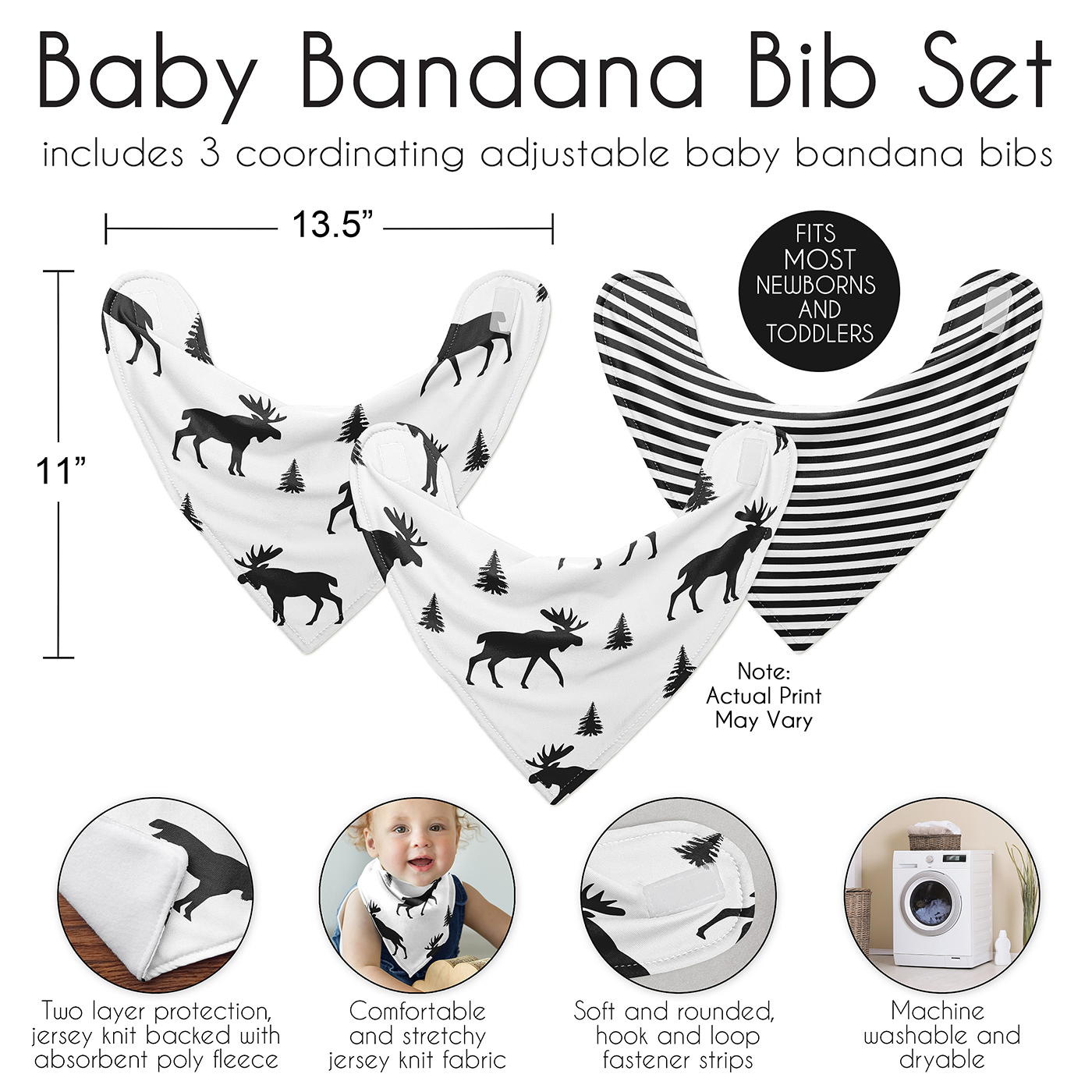 The set of 3 newborn bibs by Sweet Jojo Designs are the perfect versatile clothing protector to help avoid spills and stains on your baby at mealtimes. These stylish bandana bibs are also essential for keeping your infant dry for everyday drooling and spit up during burping. Each bibdana is made of two layers of soft, exclusive coordinating jersey knit material and lined with an absorbent fleece to keep dribbles off your little one. We all know babies get messy and parents time is limited, so machine washable drooler bibs makes clean up a breeze! Simply throw your dirty bib in the laundry and grab another from your set for your next feeding time. Gift this 3 pack bibs to expectant mom’s and dad’s or add to your registry to ensure you get this adorable trio at your baby shower for your bundle of joy.