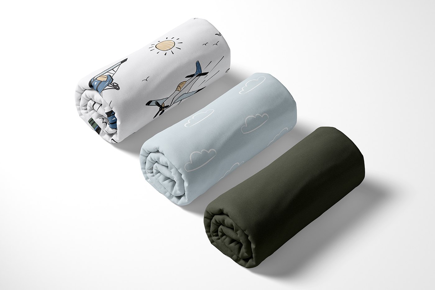 SNUG FIT: Includes: (3) Baby Crib Sheets: 52in. x 28in. x 8in. each. Our newborn standard crib sheets fit snugly, with premium elastic sewn around the entire bottom edge for a secure fit on most standard sized cribs and toddler beds, to reduce shifting and bunching. This vintage microfiber cribsheets set features an exclusive design of a solid dark green, slate & white clouds & a green, blue, grey & yellow sky, airplanes print & is gentle on delicate skin to foster a soothing sleep environment.DESIGNED IN THE USA: By real parents who understand the need for comfort, practicality, and style. Sweet Jojo Designs is a small, women owned business. The mom's on our team know a crib mattress sheet is first priority for your baby essentials to ensure a restful night of sleep. We use top fabrics & designs to create soft crib sheets that are stretchy & comfortable for your infant or toddler. We've studied the latest trends in airplanes crib sheets for baby boys to bring you the finest product.SAFE & DURABLE: Sweet Jojo Designs is a proud Baby Safety Alliance member and rigorously tests products to meet or exceed CPSC safety standards. Our breathable crib sheets are designed with busy parents in mind. Quick to change, easy machine washable and tumble dry on low. The high quality stitching and fabric ensure long-lasting use and will hold up wash after wash. Use one crib sheet in your newborns bed and have spares nearby to swap in between washes & to be prepared if an accident happens.PERFECT GIFT: Add baby boy crib sheets to your list of must haves! Including a baby fitted crib sheet on your gift registry, in a baby shower gift basket or as a gender reveal present is an easy way to prepare for a baby's arrival. Whether it's nap time, bedtime, or an unexpected mess, having extras of these baby mattress sheets make changes effortless so you can focus on what matters most to you and your family. And remember, you can never have too many baby crib sheets or toddler bed sheets!NURSERY DESIGN MADE EASY: If you have a nursery to decorate, we have endless coordinating options to help. A nursery theme can be planned entirely around baby sheets for crib. Sweet Jojo Designs makes decorating simple with matching crib bedding sets, toddler bedding sets, crib sheet set, crib bed sheets, changing pad covers, milestone blankets, wall decor, decorative accessories, swaddles, and window treatments to make sure you have all you need to complete the look of your baby room. Item# 3P-CS-Airplane-GR-BU