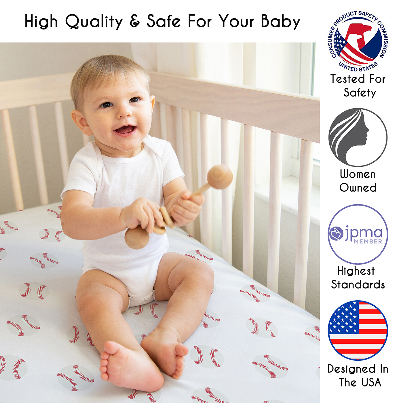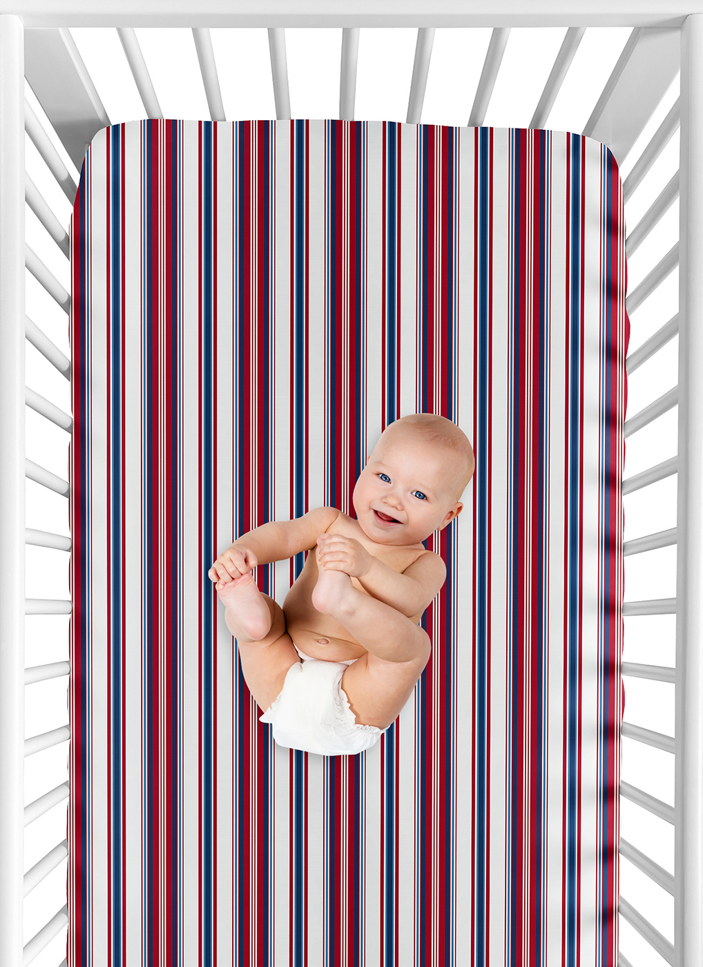 SNUG FIT: Includes: (3) Baby Crib Sheets: 52in. x 28in. x 8in. each. Our newborn standard crib sheets fit snugly, with premium elastic sewn around the entire bottom edge for a secure fit on most standard sized cribs and toddler beds, to reduce shifting & bunching. This Americana microfiber cribsheets set features an exclusive design of a solid navy blue, red white & blue striped & a baseball print for the Baseball Patch Collec. & is gentle on delicate skin to foster a soothing sleep environment.DESIGNED IN THE USA: By real parents who understand the need for comfort, practicality, and style. Sweet Jojo Designs is a small, women owned business. The mom's on our team know a crib mattress sheet is first priority for your baby essentials to ensure a restful night of sleep. We use top fabrics & designs to create soft crib sheets that are stretchy and comfortable for your infant or toddler. We've studied the latest trends in baseball crib sheets for baby boys to bring you the finest product.SAFE & DURABLE: Sweet Jojo Designs is a proud Baby Safety Alliance member and rigorously tests products to meet or exceed CPSC safety standards. Our breathable crib sheets are designed with busy parents in mind. Quick to change, easy machine washable and tumble dry on low. The high quality stitching and fabric ensure long-lasting use and will hold up wash after wash. Use one crib sheet in your newborns bed and have spares nearby to swap in between washes & to be prepared if an accident happens.PERFECT GIFT: Add baby boy crib sheets to your list of must haves! Including a baby fitted crib sheet on your gift registry, in a baby shower gift basket or as a gender reveal present is an easy way to prepare for a baby's arrival. Whether it's nap time, bedtime, or an unexpected mess, having extras of these baby mattress sheets make changes effortless so you can focus on what matters most to you and your family. And remember, you can never have too many baby crib sheets or toddler bed sheets!NURSERY DESIGN MADE EASY: If you have a nursery to decorate, we have endless coordinating options to help. A nursery theme can be planned entirely around baby sheets for crib. Sweet Jojo Designs makes decorating simple with matching crib bedding sets, toddler bedding sets, crib sheet set, crib bed sheets, changing pad covers, milestone blankets, wall decor, decorative accessories, swaddles, and window treatments to make sure you have all you need to complete the look of your baby room. Item# 3P-CS-BaseballPatch