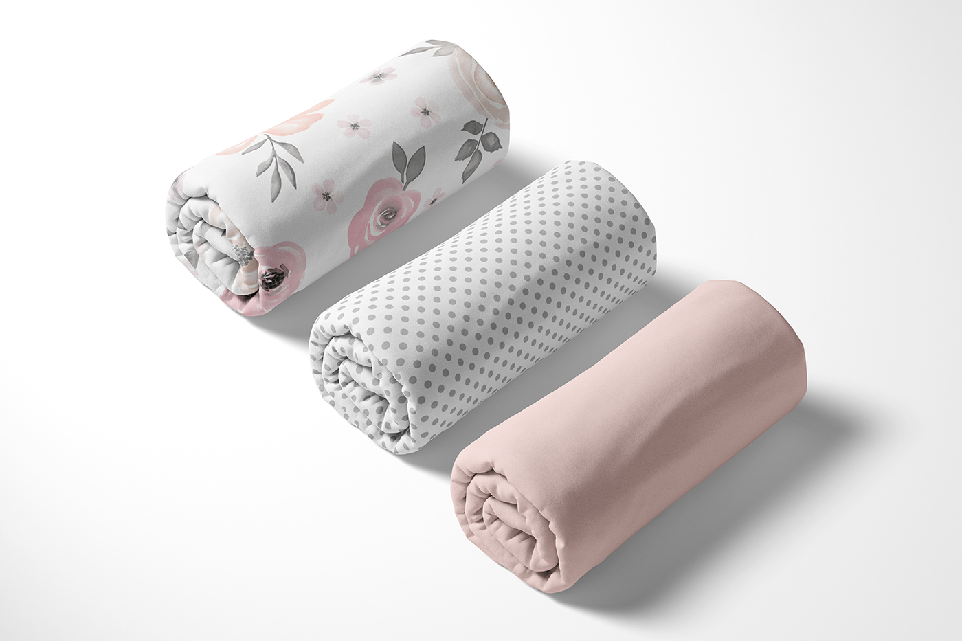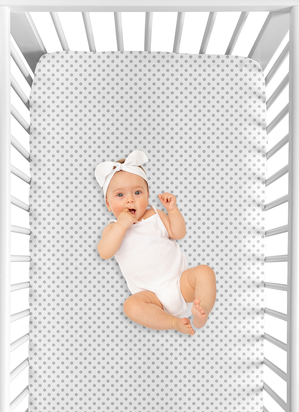 SNUG FIT: Includes: (3) Baby Crib Sheets: 52in. x 28in. x 8in. each. Our newborn standard crib sheets fit snugly, with premium elastic sewn around the entire bottom edge for a secure fit on most standard sized cribs and toddler beds, to reduce shifting and bunching. This farmhouse microfiber cribsheets set features an exclusive design of a white & grey polka dot, solid pink & a watercolor dusty rose, gray & blush flower print and is gentle on delicate skin to foster a soothing sleep environment.DESIGNED IN THE USA: By real parents who understand the need for comfort, practicality, and style. Sweet Jojo Designs is a small, women owned business. The mom's on our team know a crib mattress sheet is first priority for your baby essentials to ensure a restful night of sleep. We use top fabrics and designs to create soft crib sheets that are stretchy & comfortable for your infant or toddler. We've studied the latest trends in floral crib sheets for baby girls to bring you the finest product.SAFE & DURABLE: Sweet Jojo Designs is a proud Baby Safety Alliance member and rigorously tests products to meet or exceed CPSC safety standards. Our breathable crib sheets are designed with busy parents in mind. Quick to change, easy machine washable and tumble dry on low. The high quality stitching and fabric ensure long-lasting use and will hold up wash after wash. Use one crib sheet in your newborns bed and have spares nearby to swap in between washes & to be prepared if an accident happens.PERFECT GIFT: Add baby girl crib sheets to your list of must haves! Including a baby fitted crib sheet on your gift registry, in a baby shower gift basket or as a gender reveal present is an easy way to prepare for a baby's arrival. Whether it's nap time, bedtime, or an unexpected mess, having extras of these baby mattress sheets make changes effortless so you can focus on what matters most to you and your family. And remember, you can never have too many baby crib sheets or toddler bed sheets!NURSERY DESIGN MADE EASY: If you have a nursery to decorate, we have endless coordinating options to help. A nursery theme can be planned entirely around baby sheets for crib. Sweet Jojo Designs makes decorating simple with matching crib bedding sets, toddler bedding sets, crib sheet set, crib bed sheets, changing pad covers, milestone blankets, wall decor, decorative accessories, swaddles, and window treatments to make sure you have all you need to complete the look of your baby room. Item# 3P-CS-WatercolorFloral-PK-GY