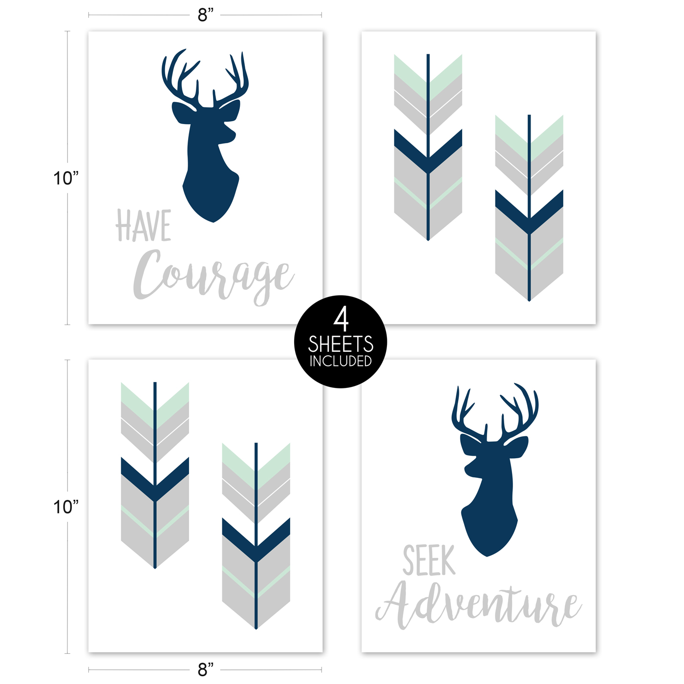 • Decorative wall art print set features deer and arrows with inspirational "Have Courage" and "Seek Adventure" quotes.
