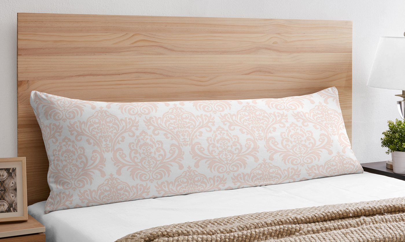 Amelia blush pink and white damask body pillow case will add that special touch to any room. It is designed to fit most standard body pillows and made to coordinate with Sweet Jojo Designs Bedding Sets. This cover features zipper closures on both sides for easy use. Machine washable and dryable. Features:100% Cotton 54in. X 20in. Zipper closures on both sides for easy use Machine washable and dryable