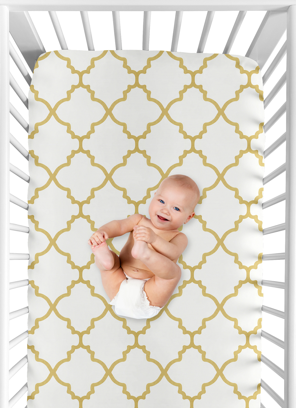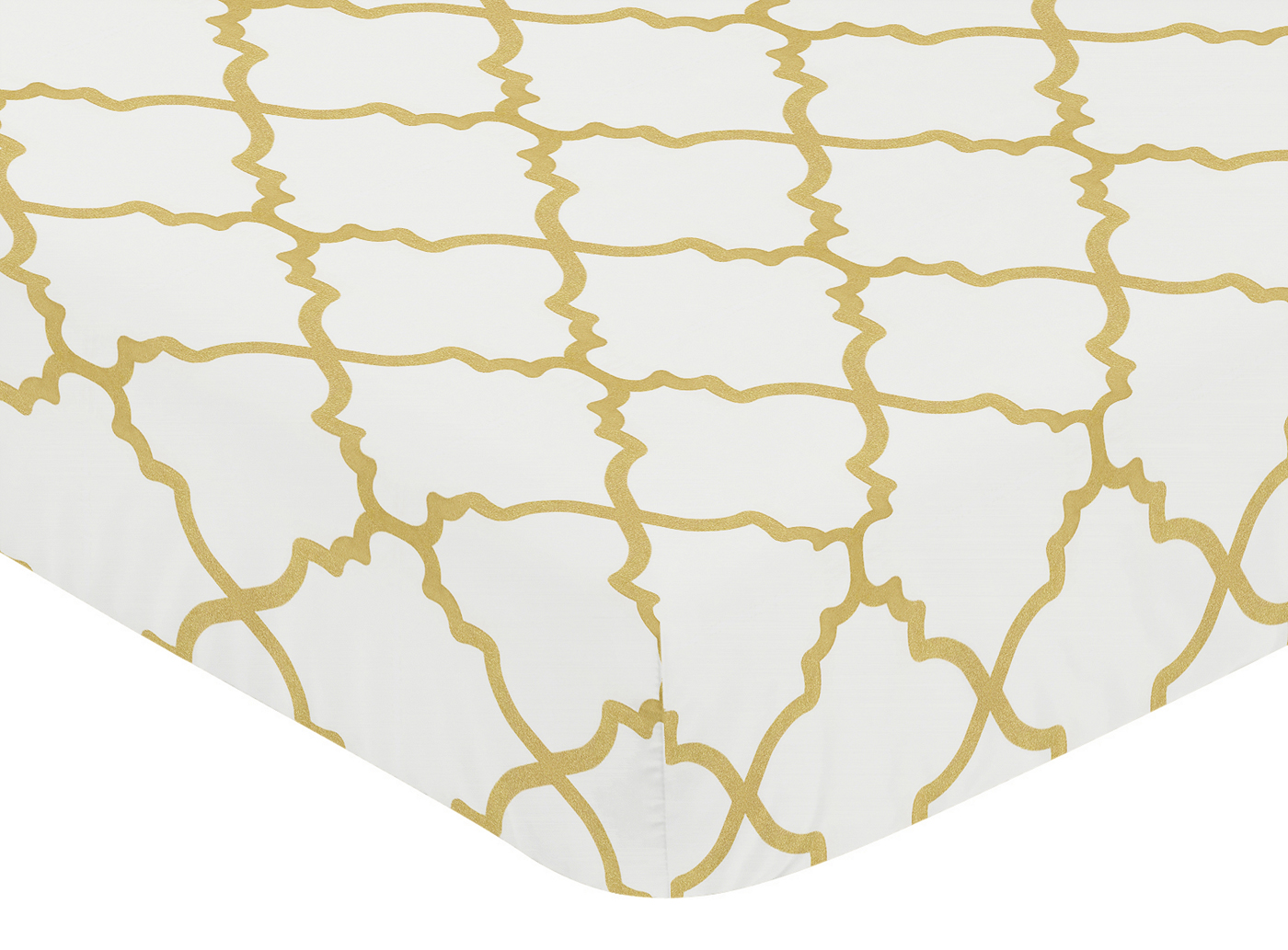 Ava fitted crib sheets will help complete the look of your Sweet Jojo Designs nursery. This white and gold trellis print brushed microfiber sheet fits all standard crib and toddler mattresses and is machine washable for easy care. Dimensions: 52 in x 28 in x 8 in.