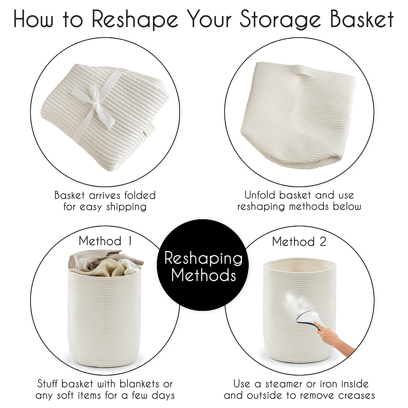 Materials: Cotton Rope Basket: Spot clean as needed; 95% Rayon 5% Spandex Jersey Liner Fabric - Machine wash cold, tumble dry low.