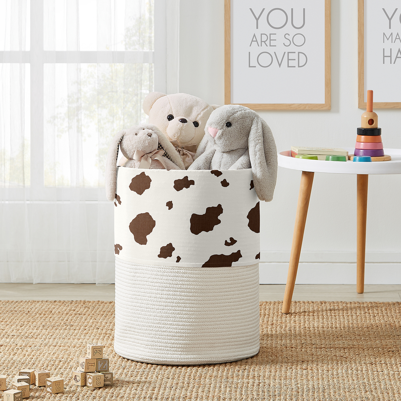Make boring gift wrapping a thing of the past! This cotton rope bin makes the perfect unique gift basket for gender reveal and baby shower presents to hold coordinating Sweet Jojo Designs nursery bedding, crib sheets, changing pad covers, nursing pillow covers, home decor and layette sets. Item# Basket-XL-WildWest-COW