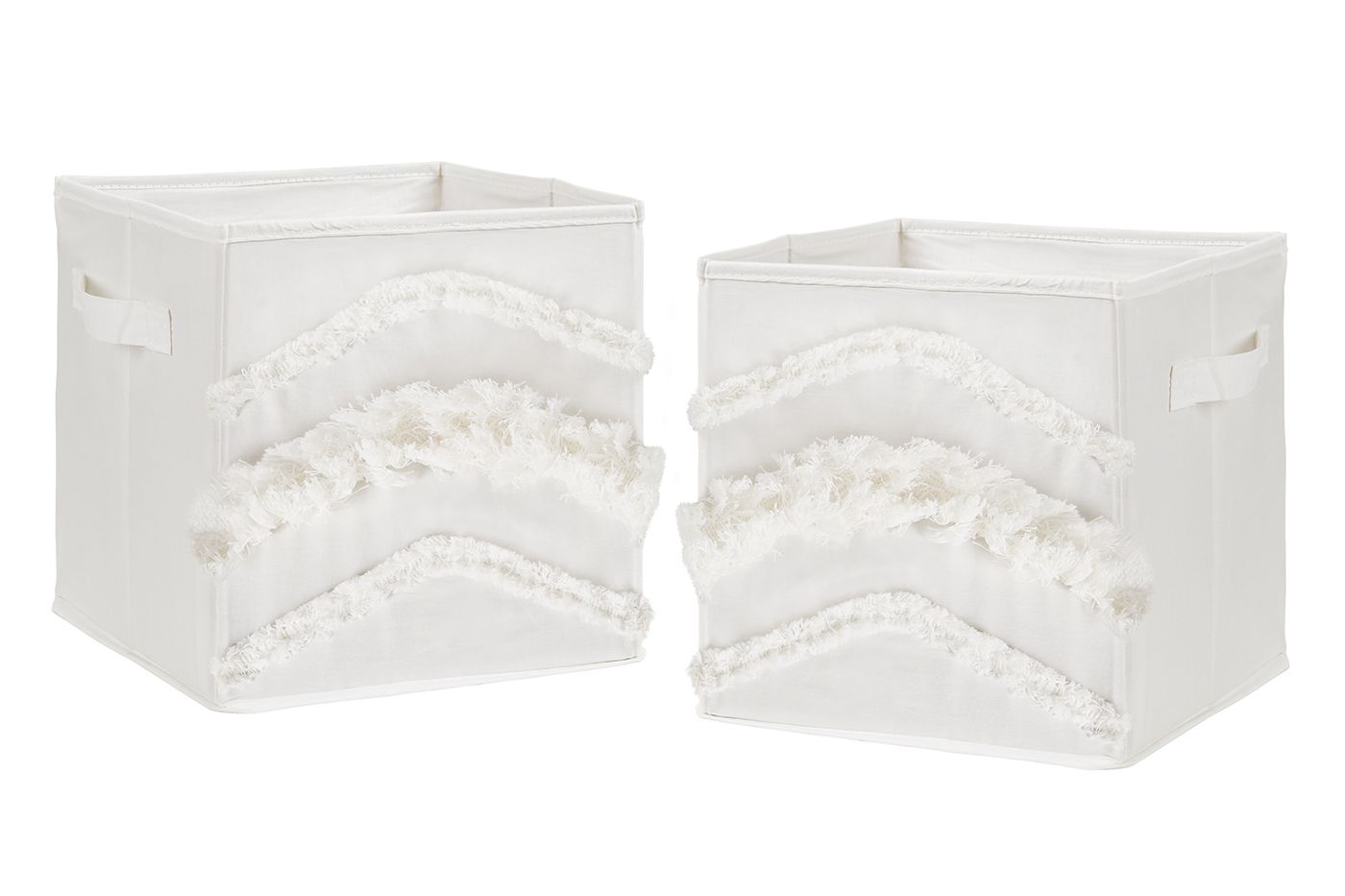 Sweet Jojo Designs fabric storage bins offer a stylish yet functional storage solution for toys, clothes, household clutter and more. What a perfect way to transform your organizational system in any office, playroom, nursery, or bedroom. This set of two foldable storage cubes can be used in most standard cubby-hole shelving furniture, as stand-alone bins, or collapsed to save space when not in use.