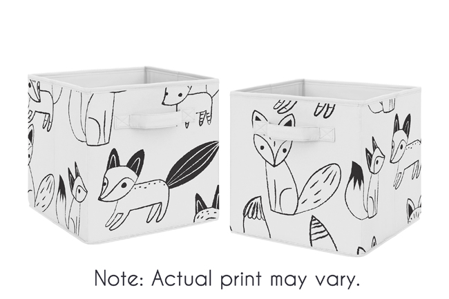 Fox Black and White Collection Foldable Fabric Storage Bins - Set of 2