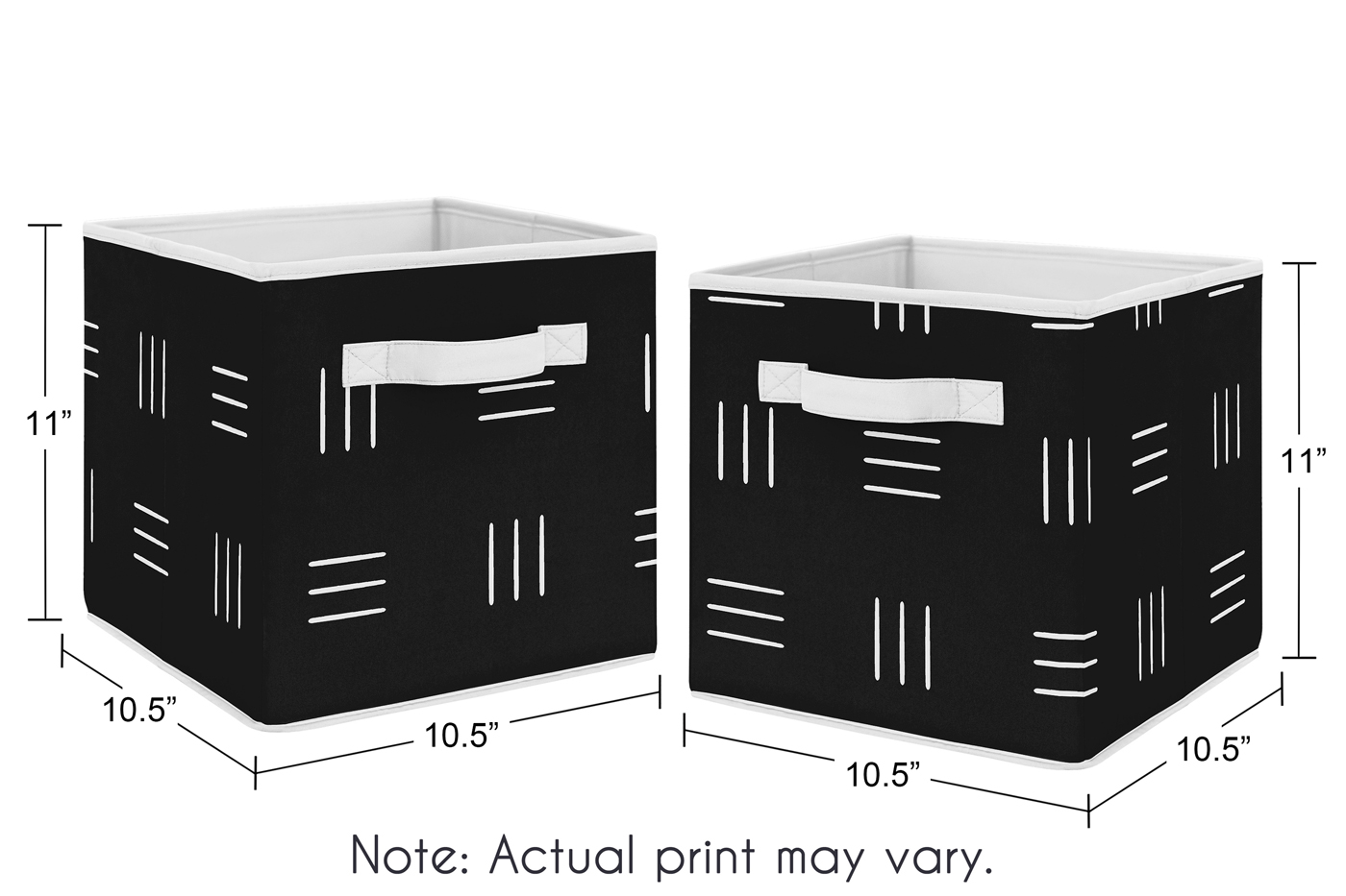 Sweet Jojo Designs fabric storage bins offer a stylish yet functional storage solution for toys, clothes, household clutter and more. What a perfect way to transform your organizational system in any office, playroom, nursery, or bedroom. This set of two foldable storage cubes can be used in most standard cubby-hole shelving furniture, as stand-alone bins, or collapsed to save space when not in use.
