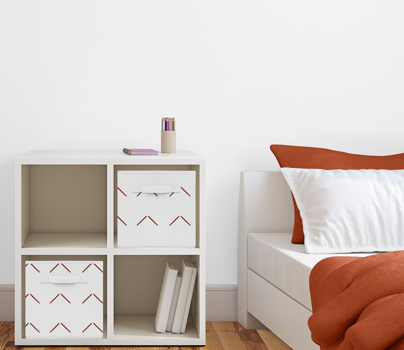 Reinforced fabric handles allow bins to easily slide in and out of most standard cube shelving