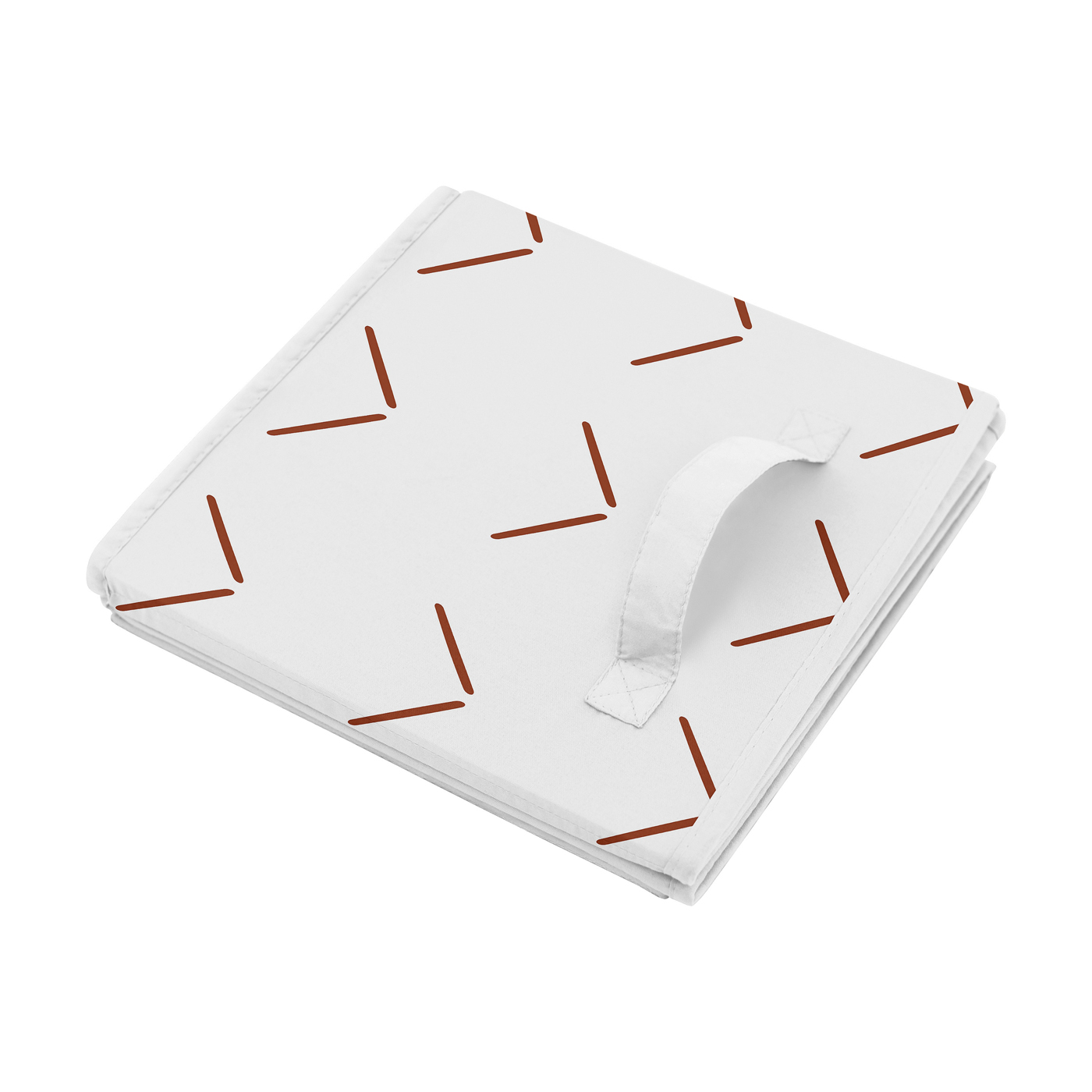 Features a rust orange and white arrow chevron print