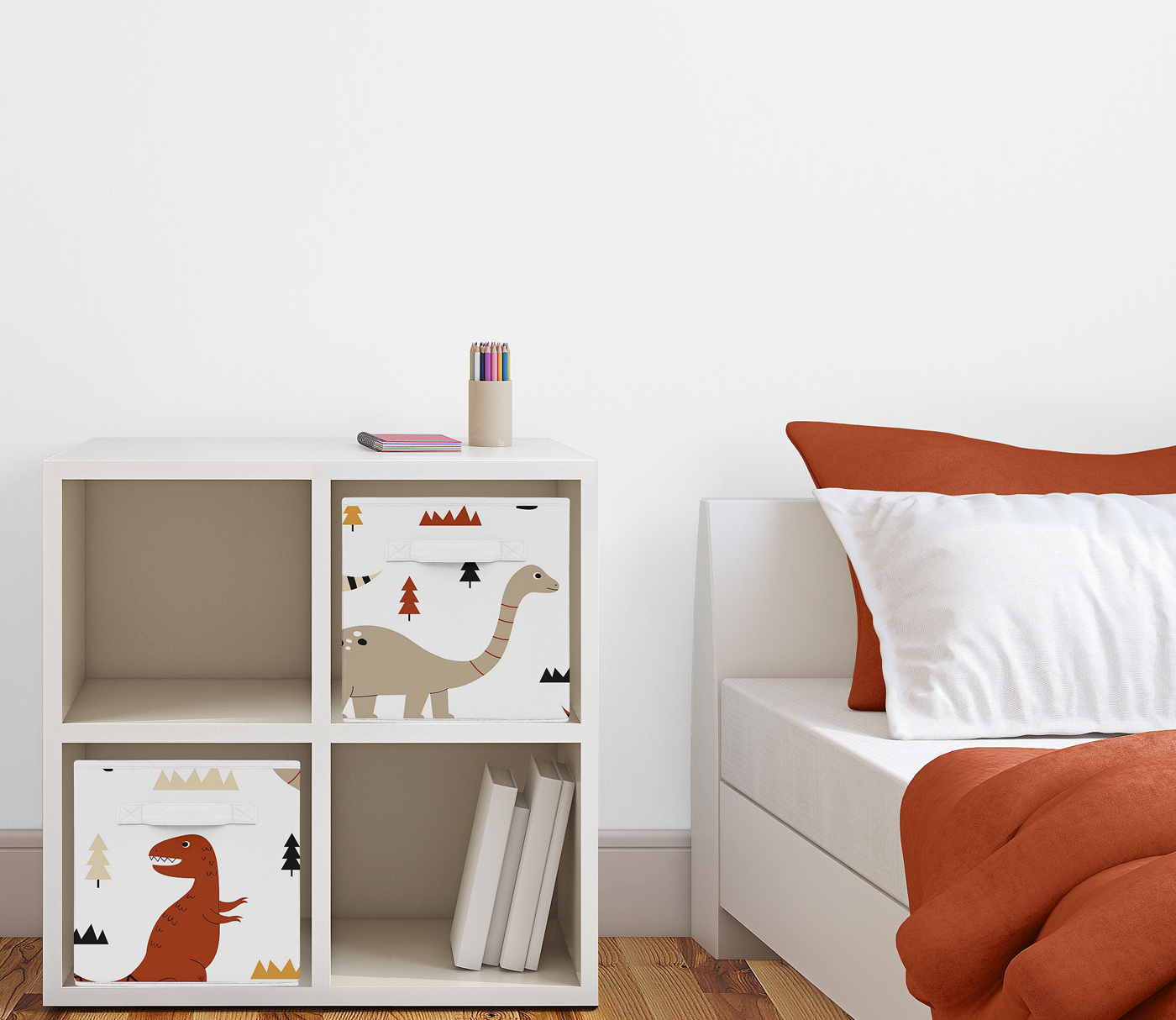 Reinforced fabric handles allow bins to easily slide in and out of most standard cube shelving