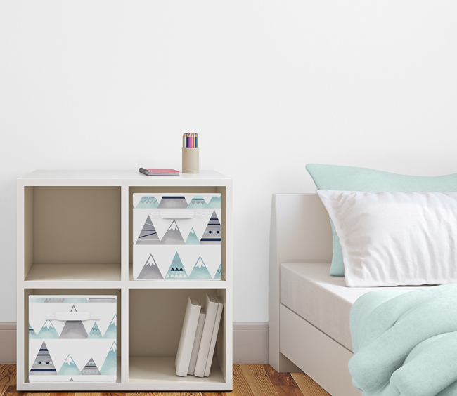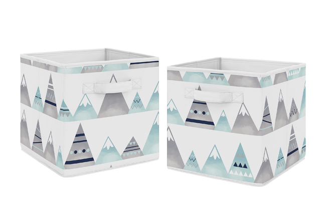 Mountains Grey and Aqua Collection Foldable Fabric Storage Bins