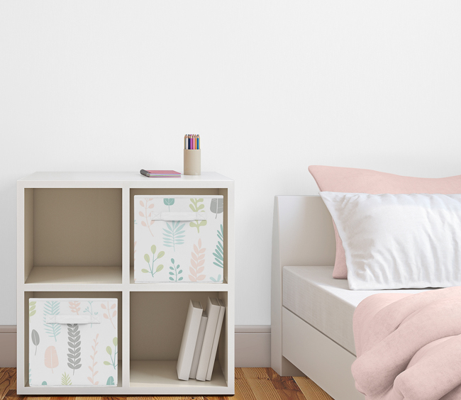 Reinforced fabric handles allow bins to easily slide in and out of most standard cube shelving