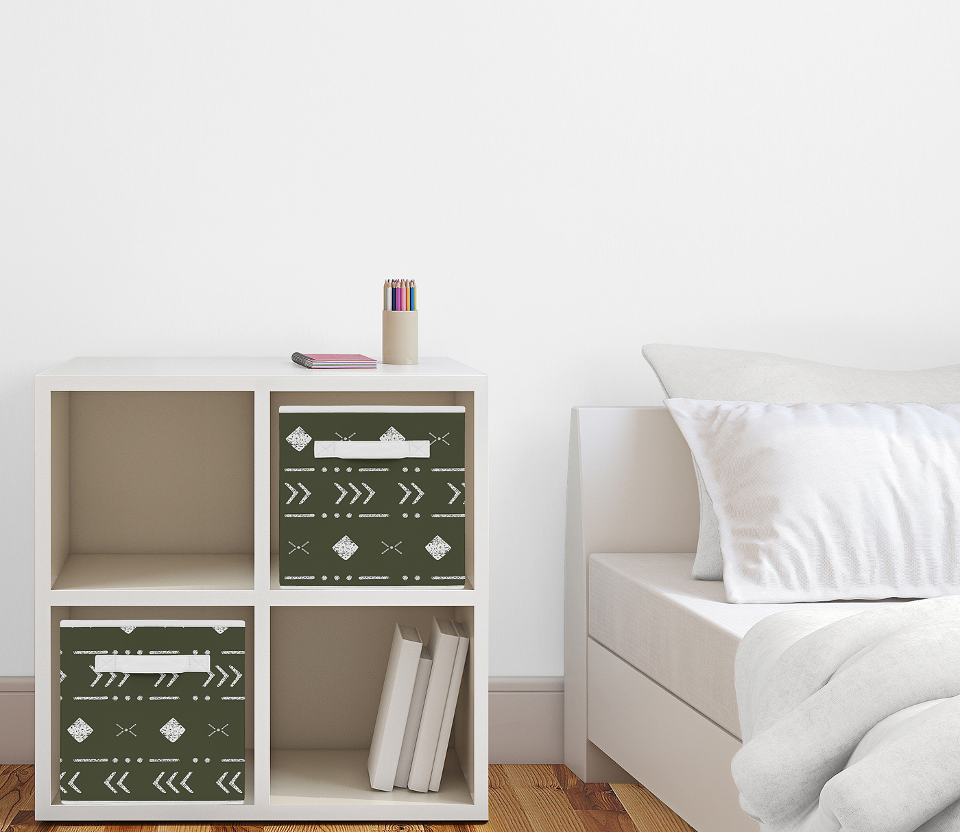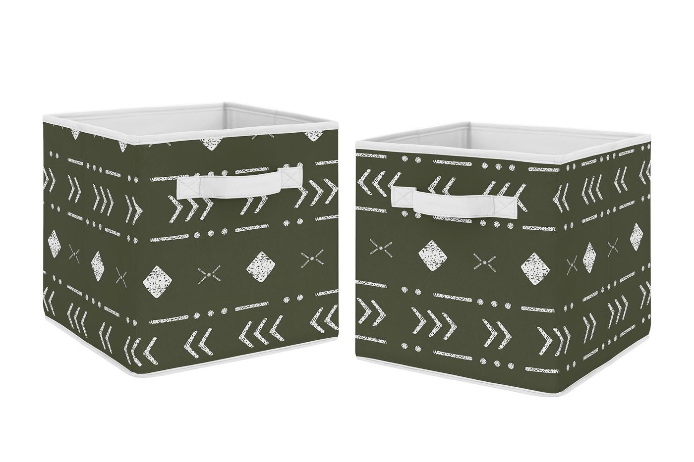 Boho Tribal Green and White Foldable Fabric Storage Bins