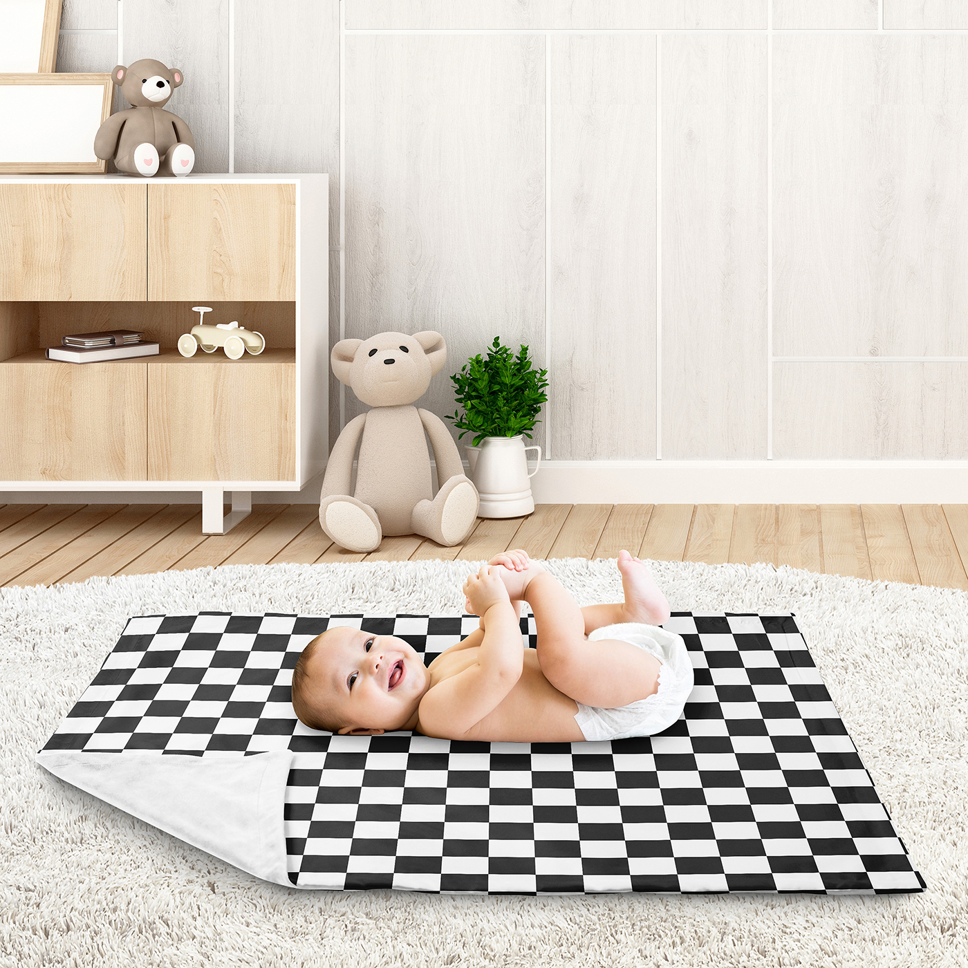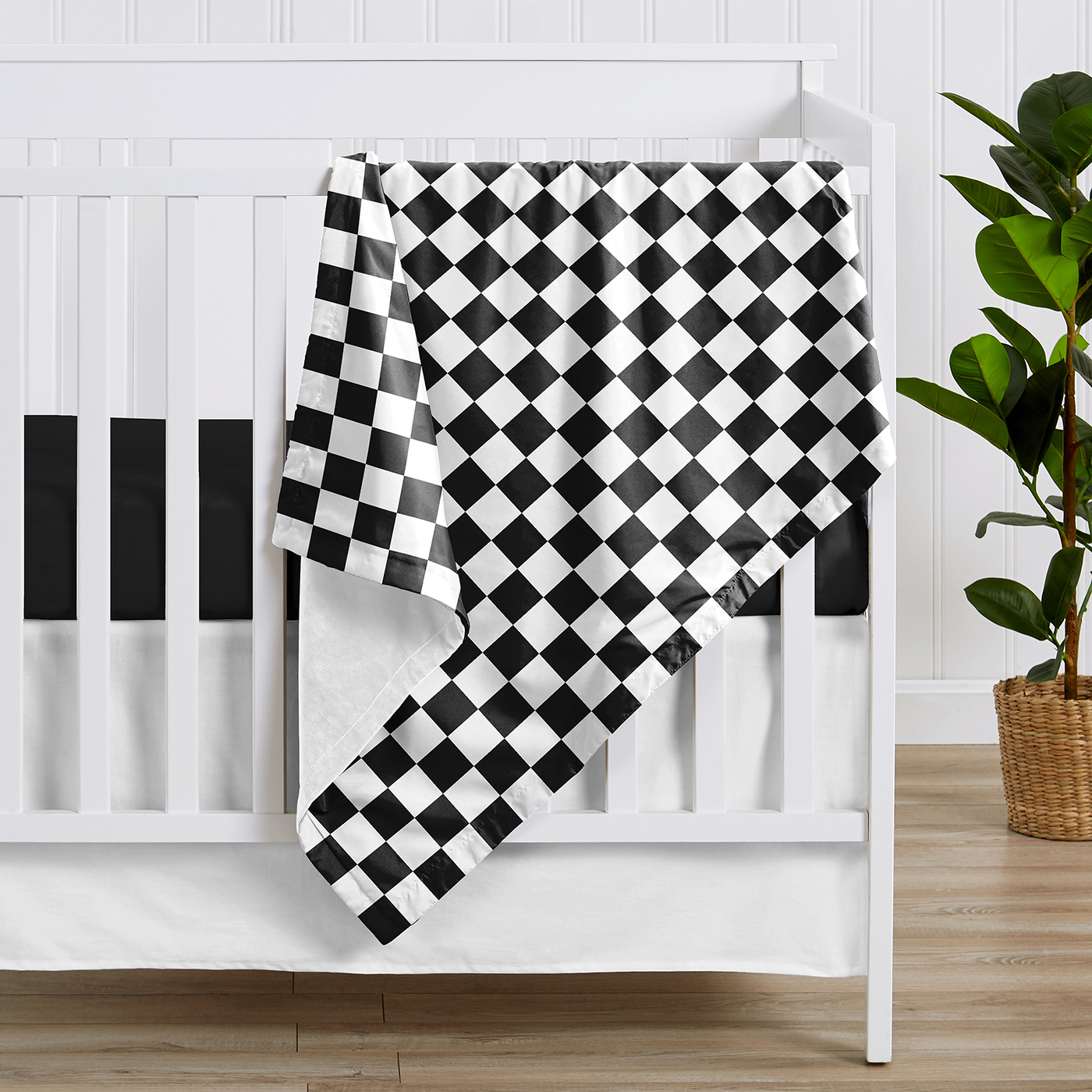 SOFT BABY BLANKET INCLUDES: 30in. x 36in. Designed in the USA with moisture wicking, super soft brushed microfiber and minky fabric. Machine washable, tumble dry low. This minimalist baby unisex blanket features a white and black geometric, retro, classic racing flag, checkered, gingham plaid checker board print that reverses to a solid white minky that effortlessly blend style and sophistication, making them a standout addition to any bedroom or nursery decor.ALL DAY, EVERY DAY COMFORT: Soft security blankets are your next nursery essential as they offer babies a sense of comfort, familiarity, and reassurance. The gentle, cozy fabric helps little ones feel calm and secure, whether they’re settling down for a nap, transitioning to sleep at night, or adjusting to new environments. Many parents find that a favorite blankey can ease separation anxiety and promote better sleep routines.DESIGNED IN USA TO BE SAFE & DURABLE: As a proud Baby Safety Alliance member who rigorously tests products to meet or exceed CPSC safety standards, Sweet Jojo Designs is dedicated to creating high-quality products that blends style, comfort, and functionality. Our products are crafted with premium materials and details to have your favorite themes come alive and help parents design the perfect space for their little one. Trusted by families worldwide!PERFECT GIFT: Add a baby security blanket gender neutral to your list of must haves! Include this receiving blanket along with a coordinating crib bedding set or toddler bedding set on your gift registry, in a baby shower gift basket or as a gender reveal present is an easy way to prepare for a baby's arrival. This minky blanket works with nursery, bedroom or living room and the perfect gift for women and men! This exclusive design makes it the perfect addition to any generation.MATCHING DECOR & ACCESORIES: Match your favorite Sweet Jojo Designs home decor and bedding with this soft blanket to coordinate perfectly and create a cohesive look and adds a personalized touch to your space! Complete any room in your home with our coordinating room decor such as window treatment panels, throw pillows, bedding sets, hampers, wall decor, sheet sets, shower curtains, memo boards and more. Item# Blanket-Check-BK-WH