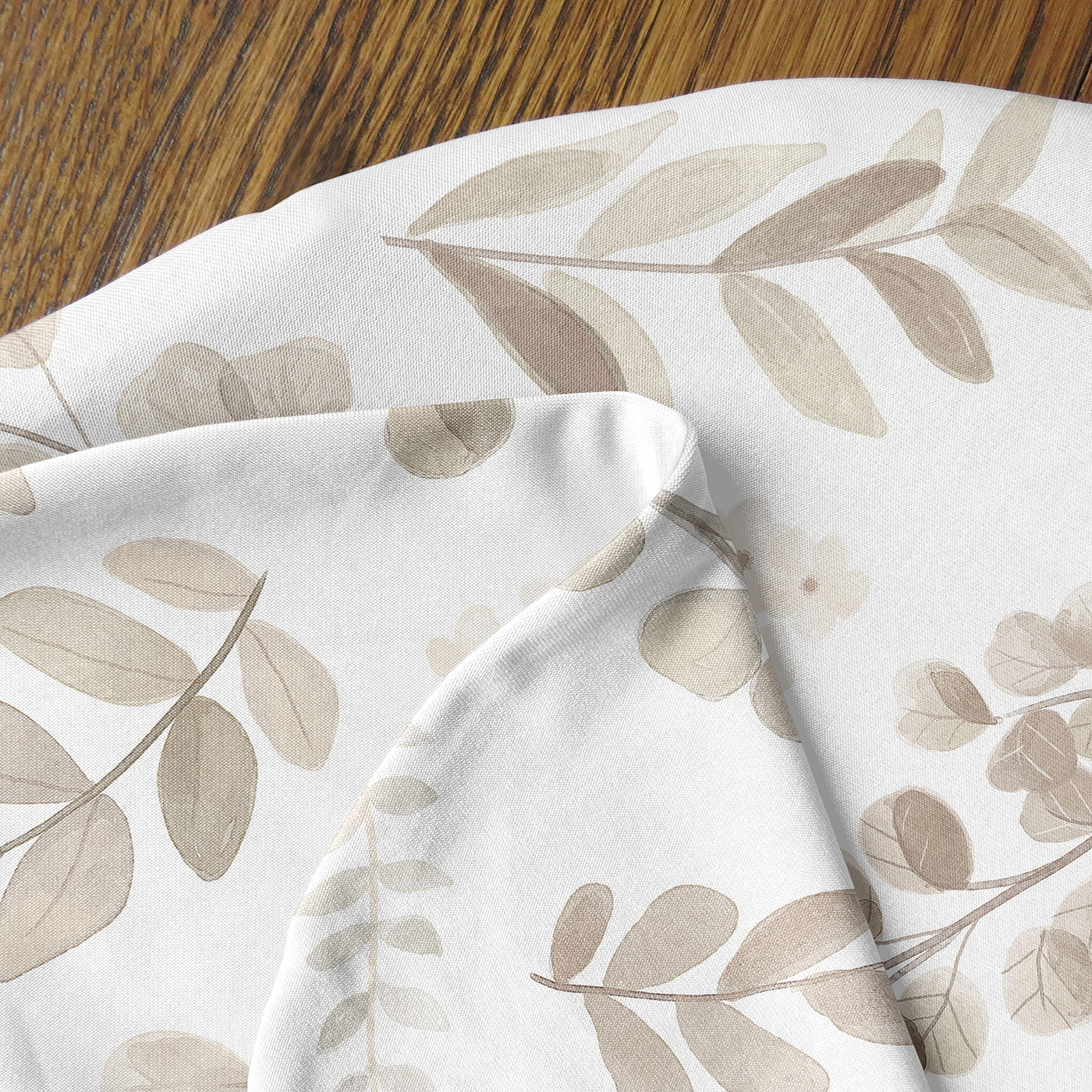 95% Rayon/5% Spandex Jersey Stretch Knit featuring taupe, beige and white botanical floral leaves