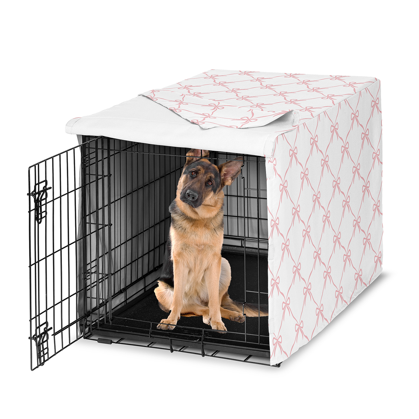 48" DOG CRATE COVER INCLUDES: (1) 48in. x 30.5in. x 32.5in. Kennel Cover ONLY. Designed in the USA by lovers of both pets and home decor! Machine washable, tumble dry low. This vibrant dog kennel cover pets would pair perfectly with coordinating bedding sets and match with the Elegant, Ballerina, Dancer, Princess, Ballet Collection accessories to complete your bedroom look. Use it in your bedroom, kitchen or living room for the perfect decor addition.MODERN PET-FRIENDLY DECOR: This large girl dog crate cover boasts an exclusive design featuring a rose blush pink and white feminine minimalistic elegance, vintage coquette classic bows, princess, dancer, ballerina ballet bow print. Machine washable. Tumble dry low. DOG KENNEL COVER ONLY – DOG CAGE/CRATE/KENNEL NOT INCLUDED.ELEGANT BOWS DESIGN: This durable and stylish dog crate cover is the best way to create a comfortable and cozy space for your four legged friend with a protective fabric that securely covers the top of your pets cage for a dark and tranquil crate at all times. Give your puppy a space where they can rest and relax after a long day of playing or secure flaps with our hook and loop closure design to allow your pet to enter and exit as they please.DESIGNED IN THE USA: By real pet owners who understand the need for comfort, practicality, and style. Include your furry little one in your home room decoration! This kennel crate cover adds style and function to any home while creating a cozy, secure space for your pets. Each crate cover reflects a love for dogs while providing a practical, stylish solution for crate-trained pets.MATCHING DECOR & ACCESORIES: Match your favorite Sweet Jojo Designs home decor with our kennel covers for dogs to coordinate perfectly and create a cohesive look and adds a personalized touch to your space! Complete any room in your home with our coordinating room decor such as window treatment panels, throw pillows, bedding sets, hampers, wall decor, sheet sets, shower curtains, memo boards and more.Item# Crate-48-Ballet-BOW