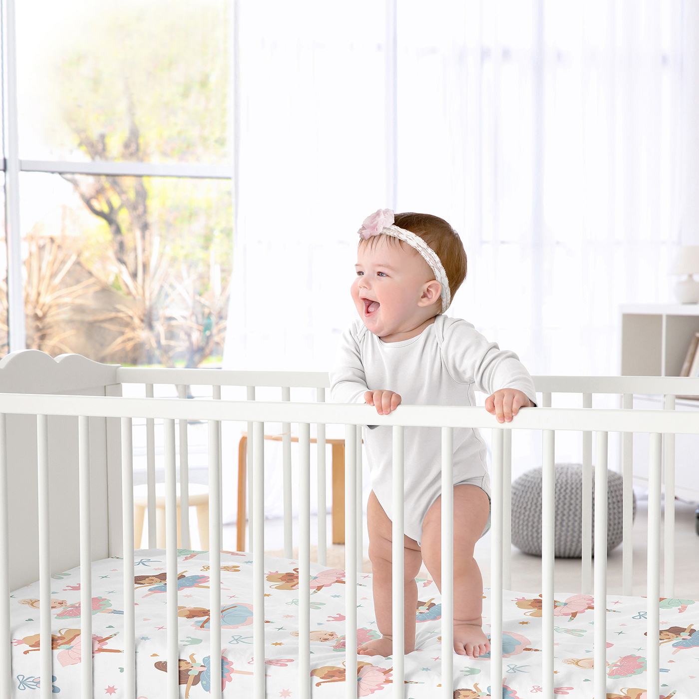 Sweet Jojo Designs crib sheets are the ideal combination of unique designs, exclusive patterns, and classic colors to bring a stylish upgrade to your baby nursery or toddler bedroom and are sure to be your favorite newborn essential. This crib mattress sheet is designer curated and made with soft fabrics to complete your dream infant nursery. Our cribsheets feature a fully elastic bottom for a secure fit on most standard crib size and toddler beds. Our infant and toddler fitted crib sheets are lightweight and durable making the perfect sleeping environment for your bundle of joy. Don’t forget to purchase extras! It’s always good to have multiple baby bedding sheets to use in between laundry wash days and easily change in case of unexpected, late night messes. Or bring extra sheets from home when on vacation or traveling to grandparents house to give your tot a familiar place to rest their head no matter where you are. Pair your crib baby sheet with your favorite Sweet Jojo Designs collections and coordinate with our crib bedding sets, swaddle blankets, playmats and baby room decor accessories.
