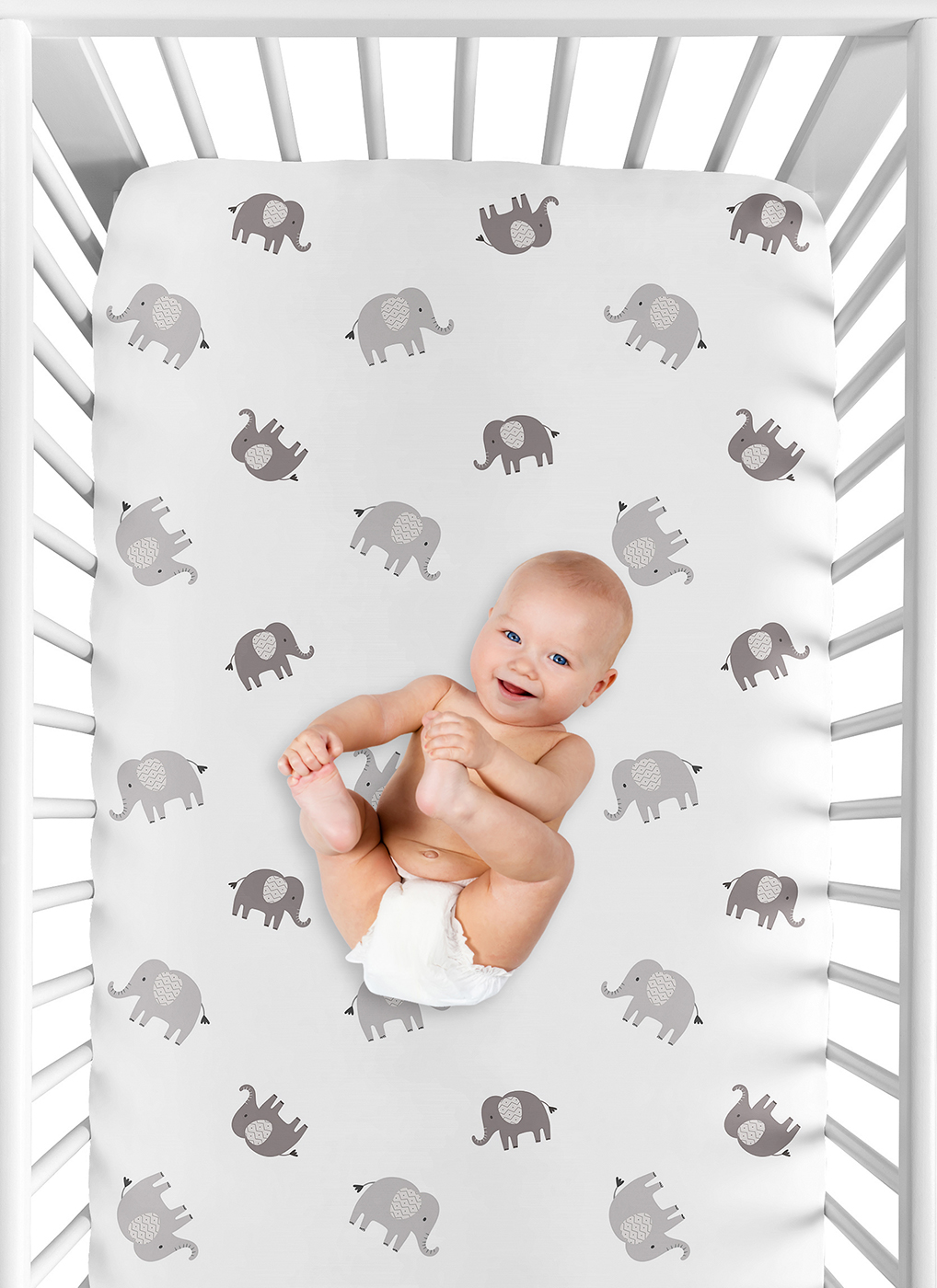 Boho Elephant Grey and White Collection 3 Piece Crib Bedding