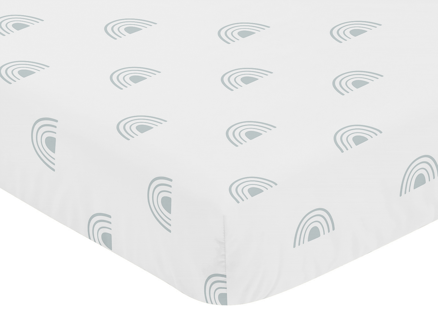 Love the fabric style? Sweet Jojo Designs also makes coordinating bedding and decor accessories.Item# CribSheet-Rainbow-WH-BU