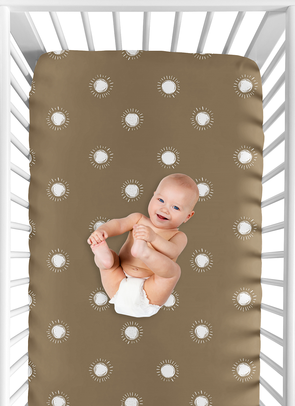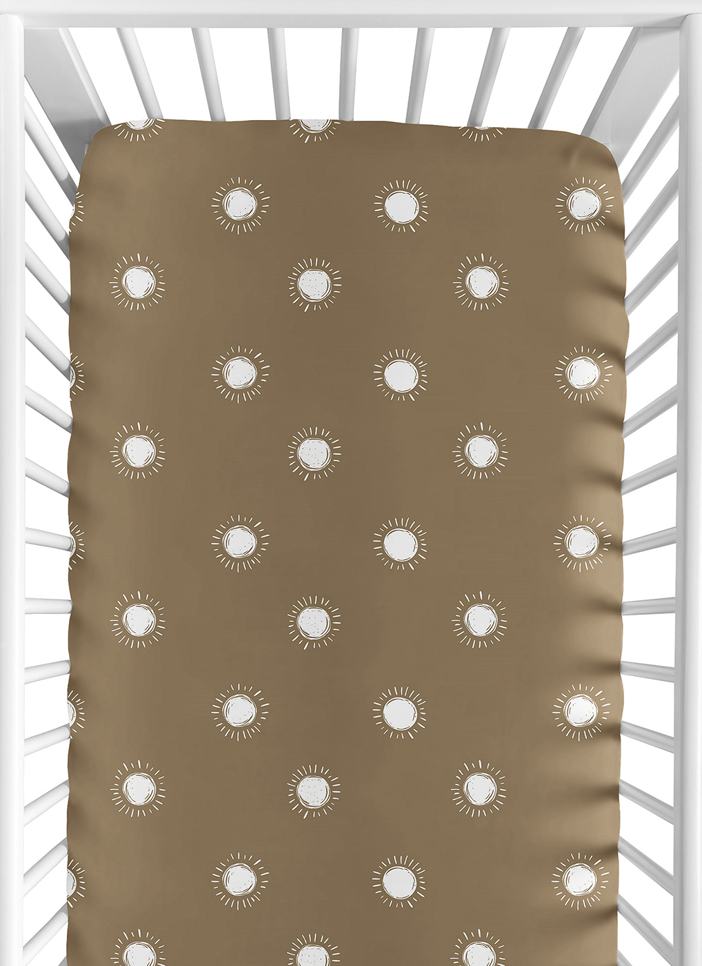 Boho Sun Cocoa Brown and White Crib Sheet
