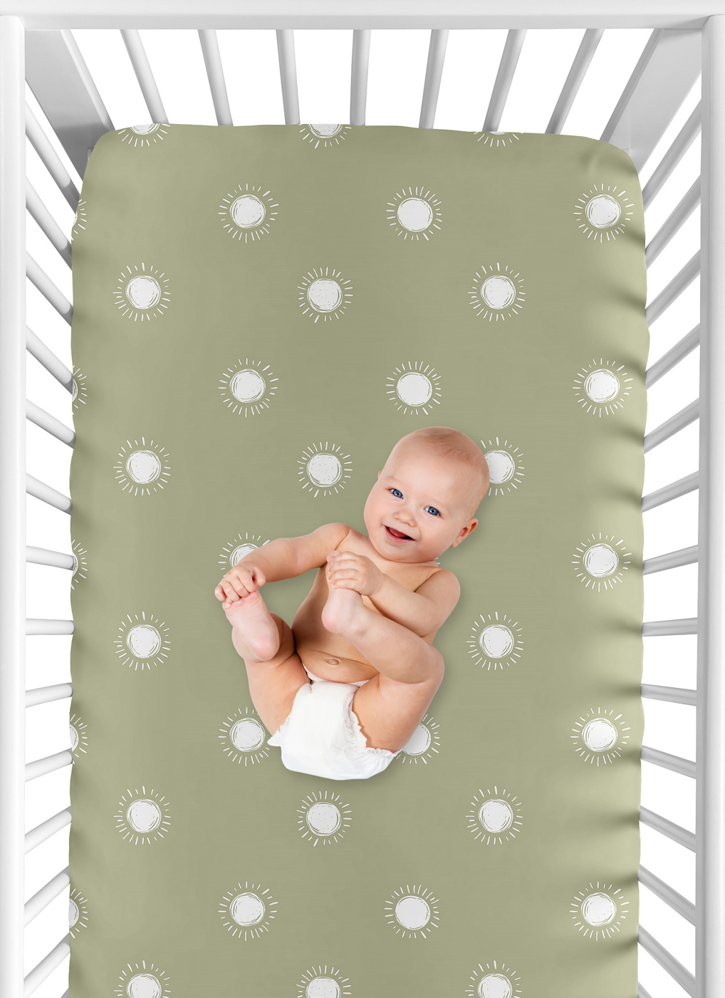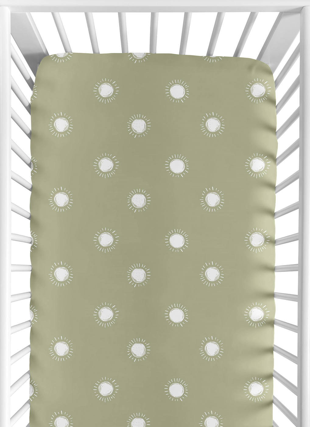 Love the fabric style? Sweet Jojo Designs also makes coordinating bedding and decor accessories.Item# CribSheet-Sun-SG-WH