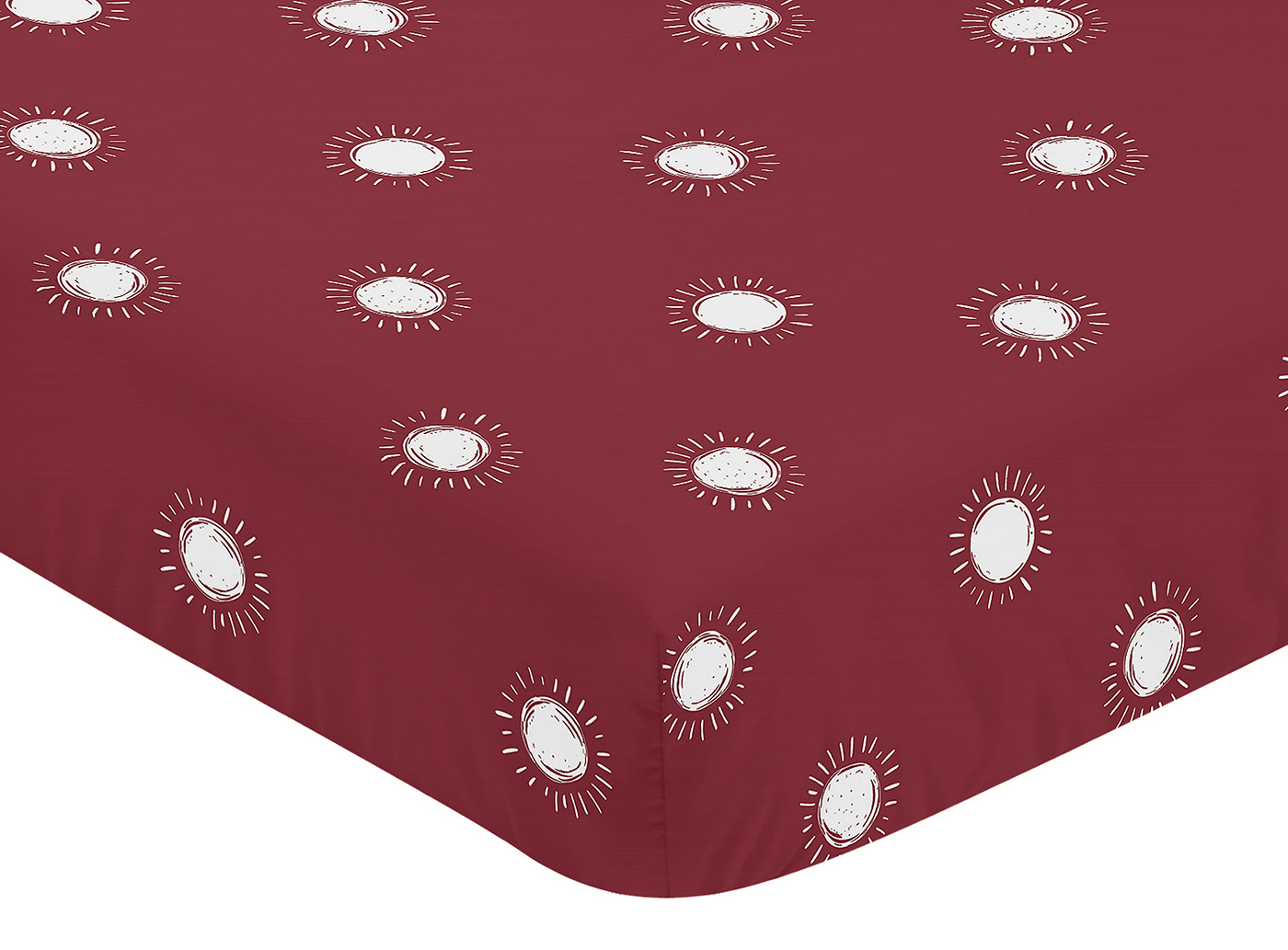 Boho Sun Burgundy Red and White Twin Sheet Set