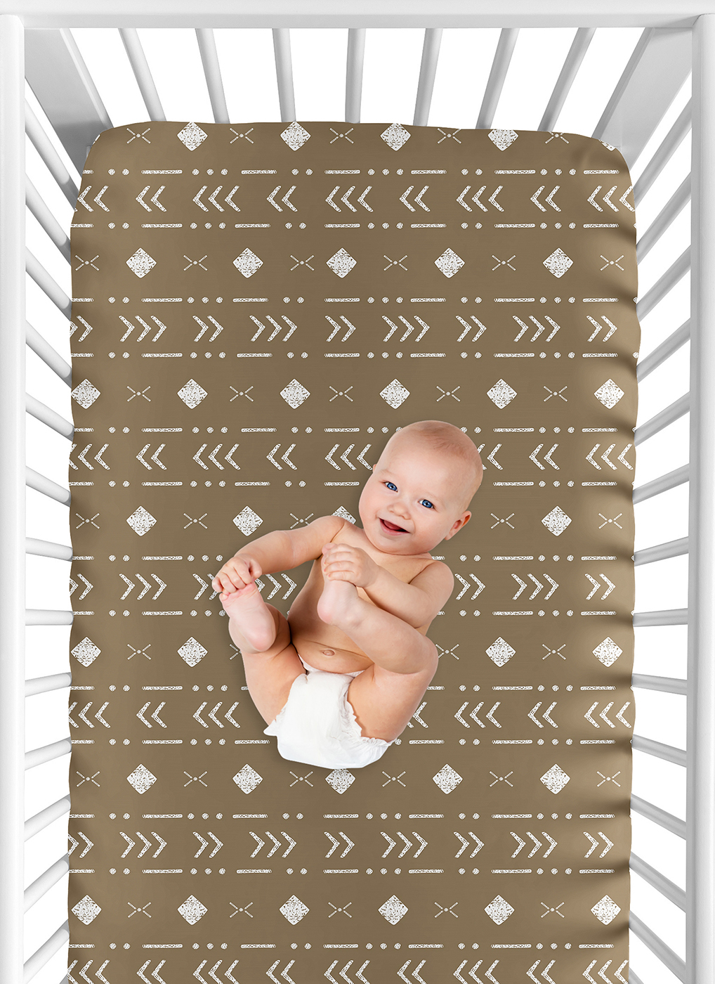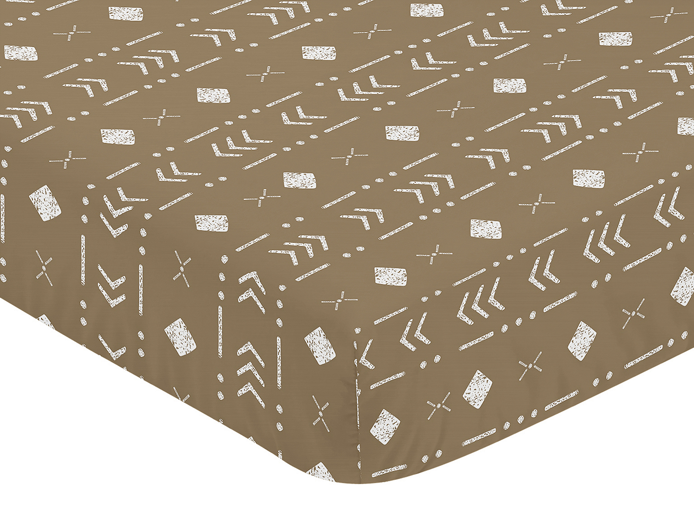 Boho Tribal Cocoa Brown and White Crib Sheet