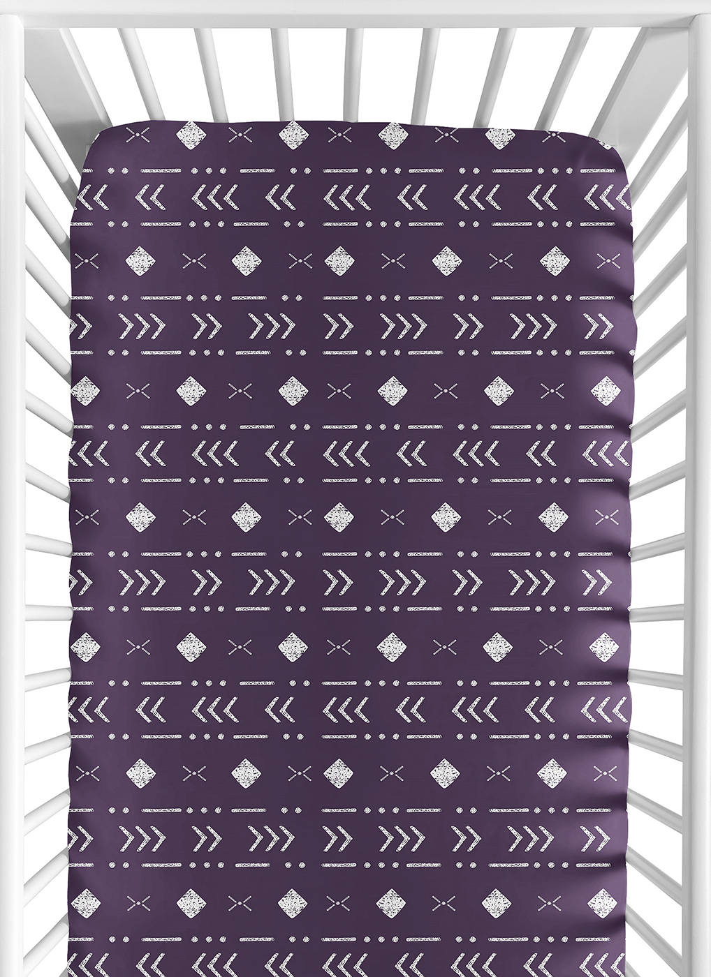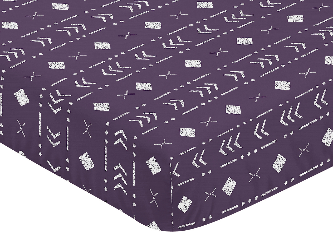 Boho Tribal Plum Purple and White Twin Sheet Set