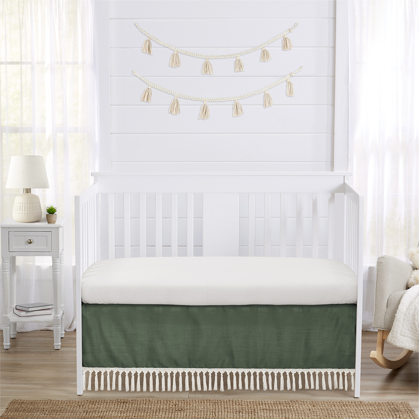 Diamond Tuft Dark Sage Green and Ivory Collection Crib Bed Skirt