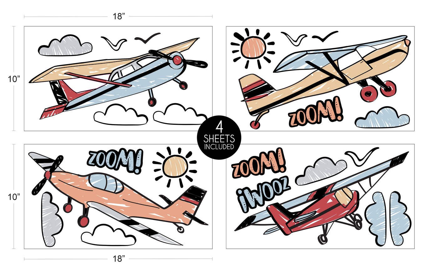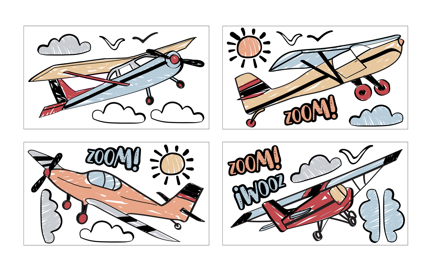 This design has matching accessories such as hampers, lamp shades, window treatments and wall decor coordinating sheets, border, wall decals, shower curtains, mobiles, changing pads and pillows cases Item# Decal-Airplane-RD-BU