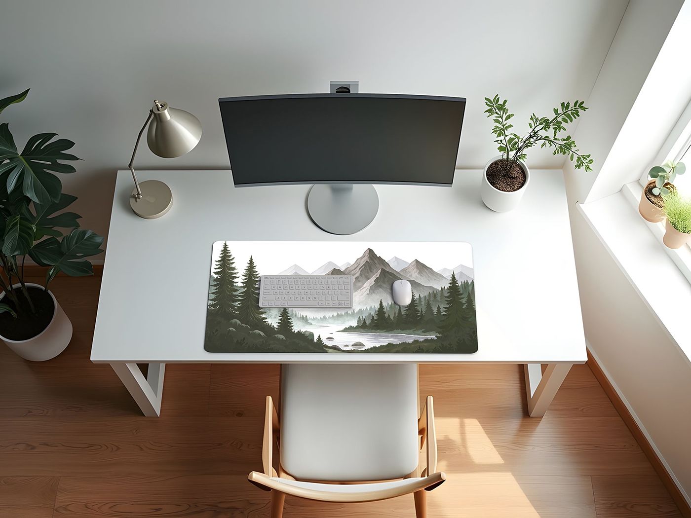 UPGRADE YOUR OFFICE DECOR FOR WOMEN & MEN: With a large mousepad that measures (31.5in. x 15.7in.). Made with a 100% polyester waterproof fabric cloth top layer that is easy to clean & a natural rubber bottom layer with woven stitched edges to create a gaming mouse pad that is smooth & stays in place for your keyboard, mouse & other computer accessories. This desk pad features a hunter green & white color palette in a trees, camping, wilderness, landscape, outdoors, woods, mountains river print.ENHANCE THE WAY YOU GAME: Place this extended mouse pad on your computer desktop as the perfect office desk decor that fits all your gaming accessories needs such as your gaming keyboard, mouse, laptop and more. Created with a non-slip rubber base that firmly grips your desk to avoid any unwanted mouse movements during those crucial game moments. Glide your cursor across the xl mouse pad, and watch how fast, accurate and stable control can change the game play while never running off the edge!VERSATILE DESK COVER MAT: Cover your current plain desk top with a decorative computer desk mat with your favorite prints to give any room or office your personal touch. Don't stop at gaming! Use the waterproof design on this keyboard pad for table protection against every day messy activities such as eating, drinking, working from home, surfing the web, typing, writing, drawing, make up, puzzles, wear and more! Made with stitched edges ensures a lasting & quality large mouse pad for desk.DESIGNED IN THE USA: By real gamers, students and office workers who understand the need for style, practicality, & size when it comes to a desk pad for keyboard and mouse. Each mouse pads for desk is made with a cushioning soft fabric to help reduce noise and vibration from keystrokes, clicker movement, trackpads jostling, stylus sketching and trackball rolling to create a seamless, uniform surface without the need for multiple smaller desktop pads with this essential decorative mousepad xl.MATCHING DECOR & ACCESORIES: Include your office accessories and office supplies for desk when thinking of decor in your computer room or home office. This desk pad mat adds style & functionality to any table while creating a space you will love to be in. Match your keyboard and mouse pad with your favorite Sweet Jojo Designs coordinating room decor such as window treatment curtains, valances, throw pillows, cub storage bins, wall art, home decor, lamp shades, blankets, memo boards, and more.Item# DMLG-Pinetree