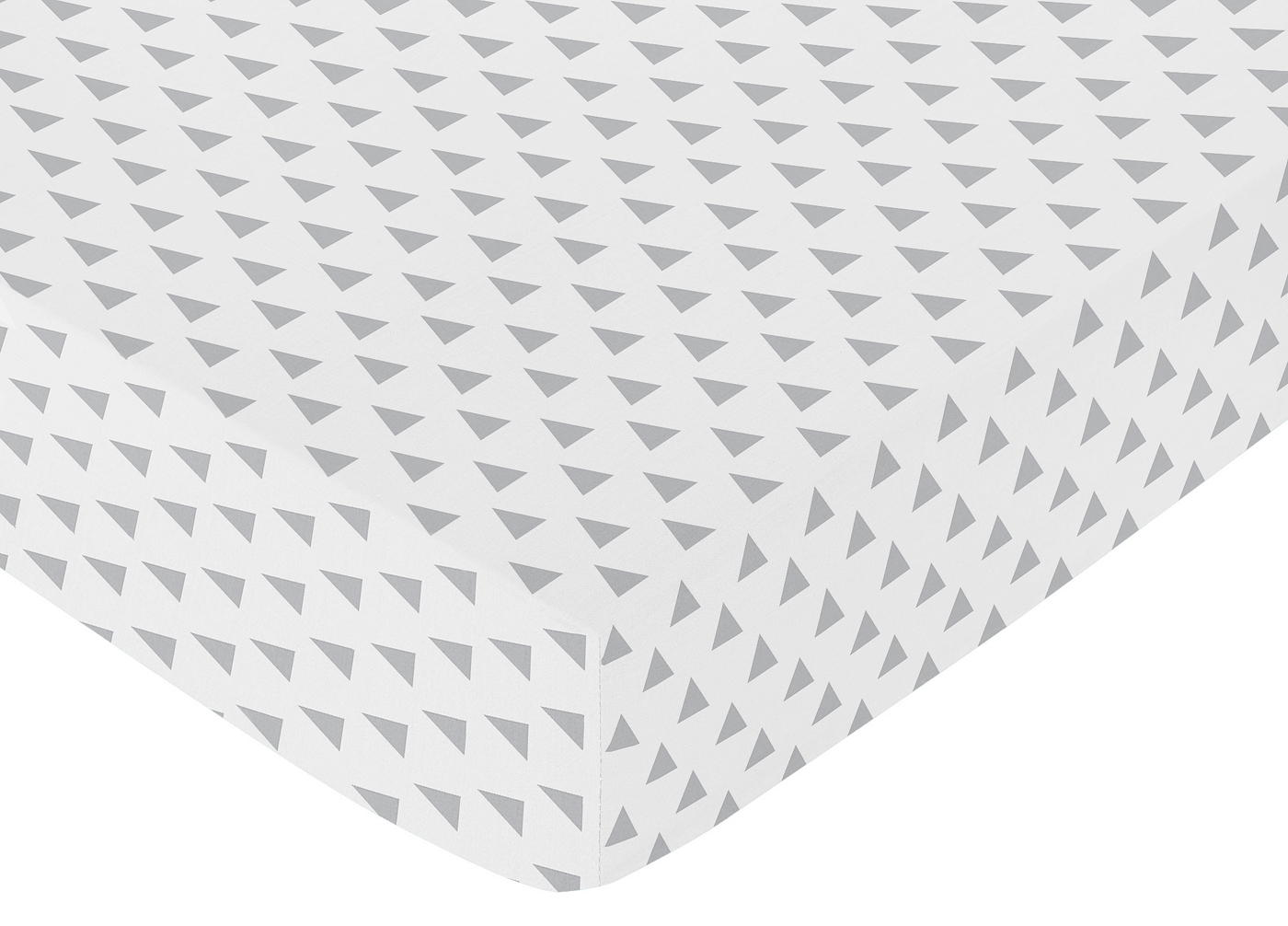 Earth and Sky fitted crib sheets will help complete the look of your Sweet Jojo Designs nursery. This triangle print brushed micro fiber sheet fits all standard crib and toddler mattresses and is machine washable for easy care. Dimensions: 52 in x 28 in x 8 in.