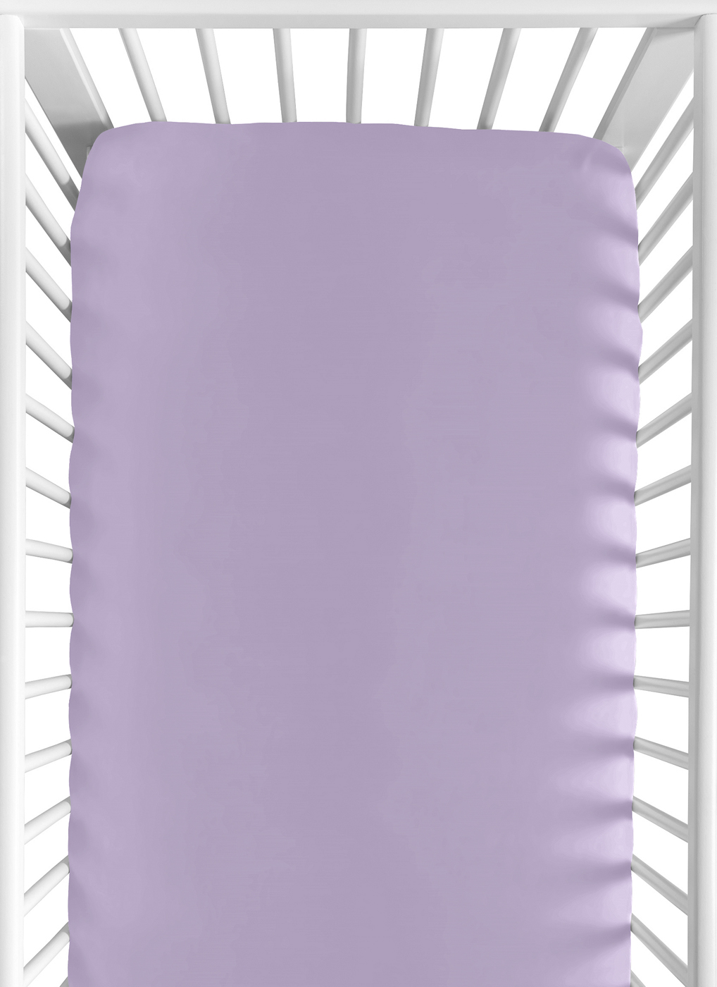 Lavender and Gray Elizabeth fitted crib sheets will help complete the look of your Sweet Jojo Designs nursery. This lavender cotton sheet fits all standard crib and toddler mattresses and is machine washable for easy care. Dimensions: 52 in x 28 in x 8 in.