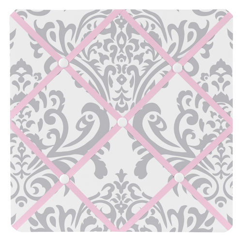 Pink and Gray Elizabeth fabric memo board with button detail will show off postcards, notes and photos. Just slip your mementos behind the decorative ribbon to create an engaging piece of original wall art. These adorable memo boards by Sweet Jojo Designs have been created to coordinate with the matching children's bedding sets.