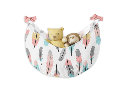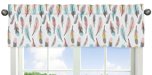 Turquoise and Coral Feather 11 pc Crib Bedding set has all that your little bundle of joy will need. Let the little one in your home settle down to sleep in this incredible nursery set. This baby girl bedding set features a multicolored feather print, a coordinating grey tribal geometric print, and solid turquoise and coral fabrics. This collection uses the stylish colors of coral, turquoise, grey, gold and white. The design uses brushed microfiber fabrics that are machine washable for easy care. This wonderful set will fit most standard cribs and toddler beds.