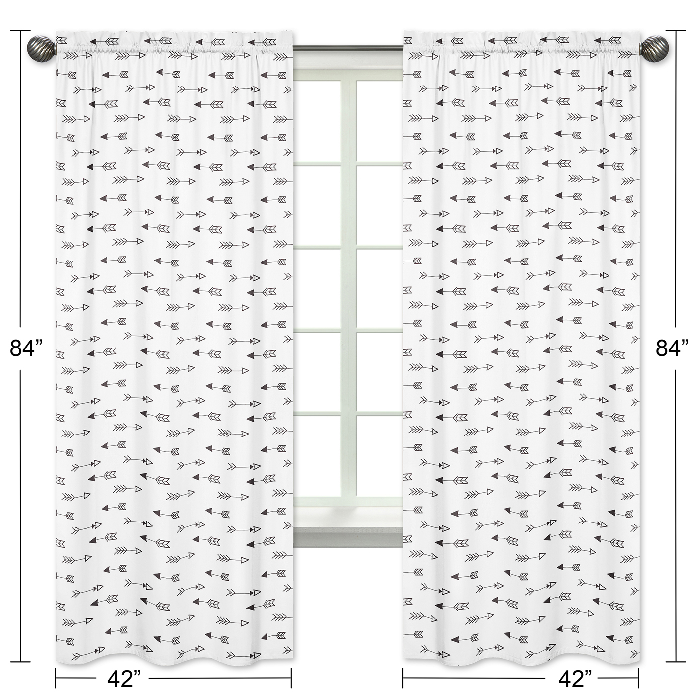Fox Black and White Collection Arrow Print Window Panels - Set of 2