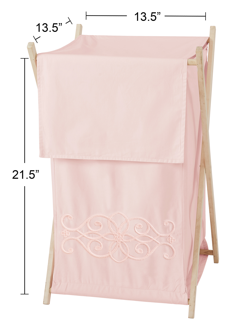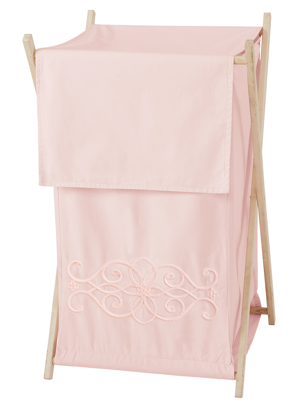 Sweet Jojo Designs coordinating stylish hamper matches exclusively with their bedding sets. Now Sweet Jojo Designs has found a way to make even the laundry look adorable. The laundry clothes hamper includes a removable body, hamper frame and a mesh inner bag that fits inside the hamper and lifts out easily for convenience when emptying and toting the laundry. The fabric flap that covers the hamper opening is easily flipped out of the way when needed. The collapsible wooden frame can be folded up for compact storage in a closet or the laundry room.