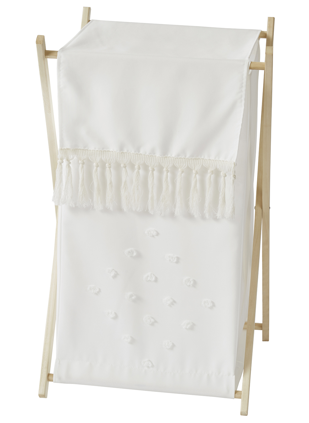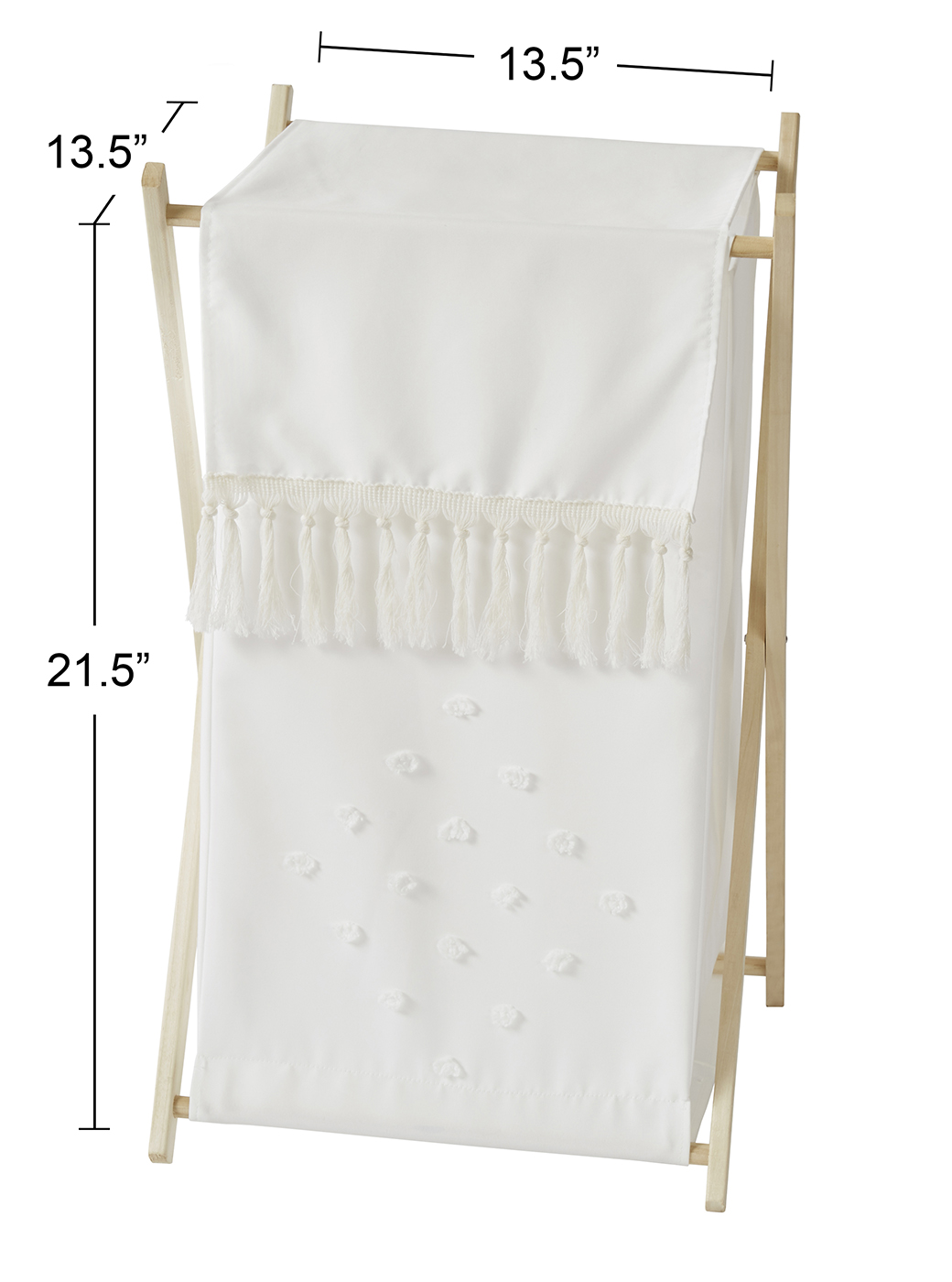 Sweet Jojo Designs coordinating stylish hamper matches exclusively with their bedding sets. Now Sweet Jojo Designs has found a way to make even the laundry look adorable. The laundry clothes hamper includes a removable body, hamper frame and a mesh inner bag that fits inside the hamper and lifts out easily for convenience when emptying and toting the laundry. The fabric flap that covers the hamper opening is easily flipped out of the way when needed. The collapsible wooden frame can be folded up for compact storage in a closet or the laundry room.