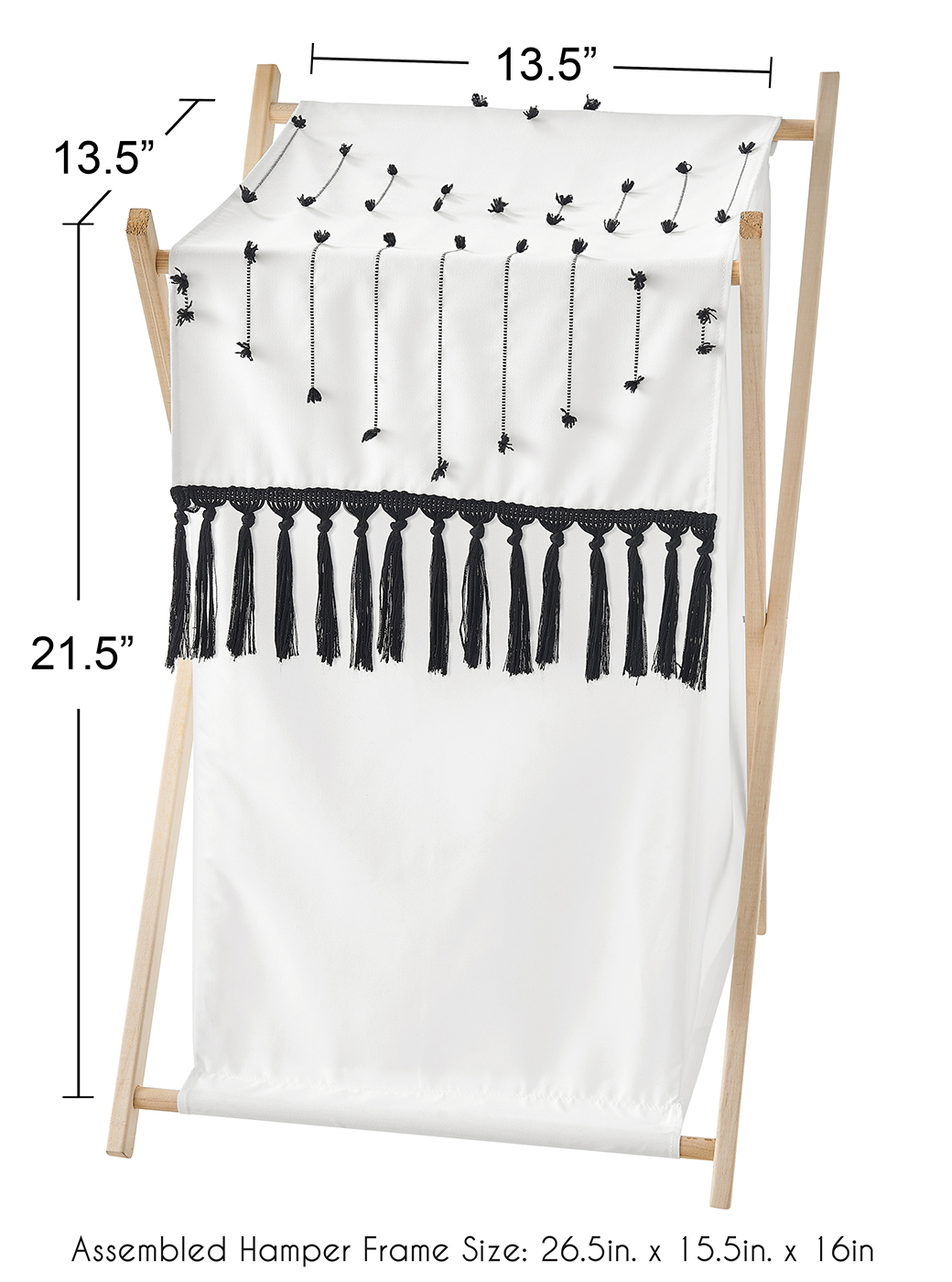 Dimensions: Assembled Hamper Frame: 26.5in. x 15.5in. x 16in. / Hamper Fabric: 21.5in. x 13.5in. x 13.5in.