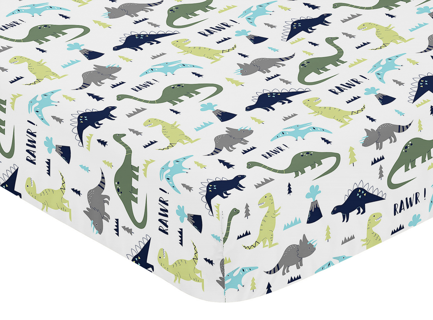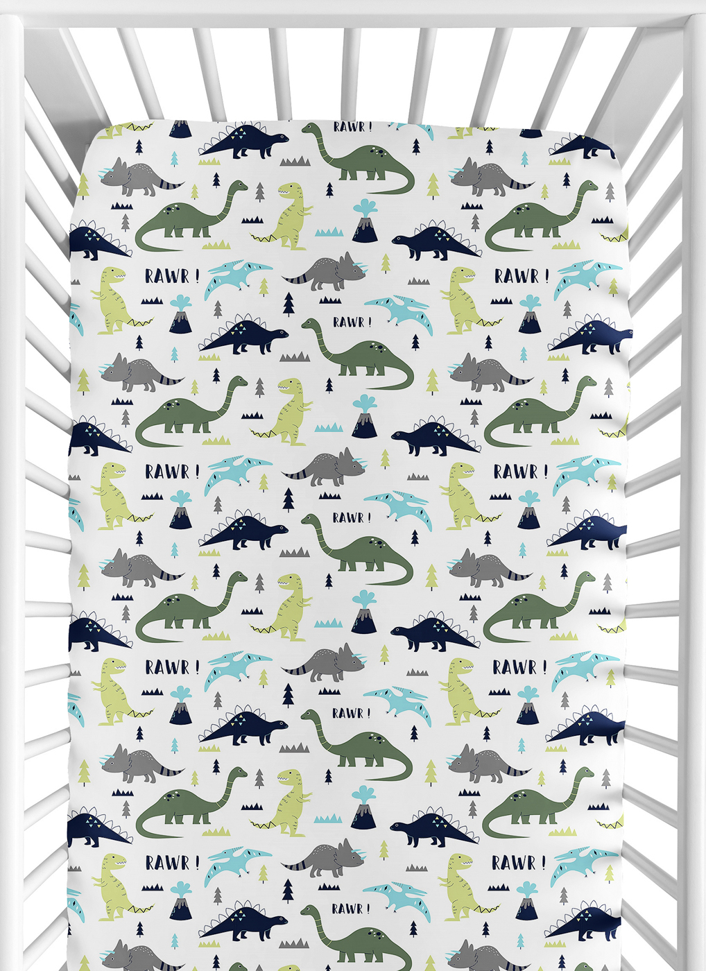 Coordinates with Sweet Jojo Designs nursery bedding sets, changing pad covers, room decor and accessoriesItem# JerseyCS-ModDino-BU-GR