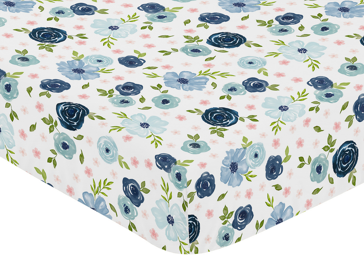 Coordinates with Sweet Jojo Designs nursery bedding sets, changing pad covers, room decor and accessoriesItem# JerseyCS-WatercolorFloral-PK-BU